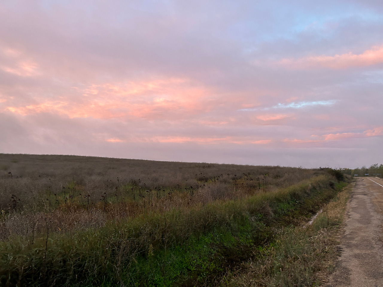 준비 후 7시 30분쯤 길을 나섰다. 아직 해가 뜨지 않아 어두웠지만 마을을 지나갈 때는 가로등이 있어서 괜찮았는데 숲길로 들어선 순간, 불빛 하나 없이 칠흑같이 너무 깜깜했다. 헤드랜턴이 있다고 해도 전혀 밝지가 않았고 그 길을 걸어가려고 하니 무서웠다. 몇 번을 혼자 걸어가려고 시도했지만 너무 무서워서 다시 뒤돌아 나오기를 반복했고 아무래도 도저히 혼자는 못 갈 것 같아서 누군가 오기를 기다렸다. 얼마 기다리지 않아 다행히 저 멀리 불빛이 보였고 순례자가 나타났는데 어제 같은 알베르게에 묵었던 한국인이었다.