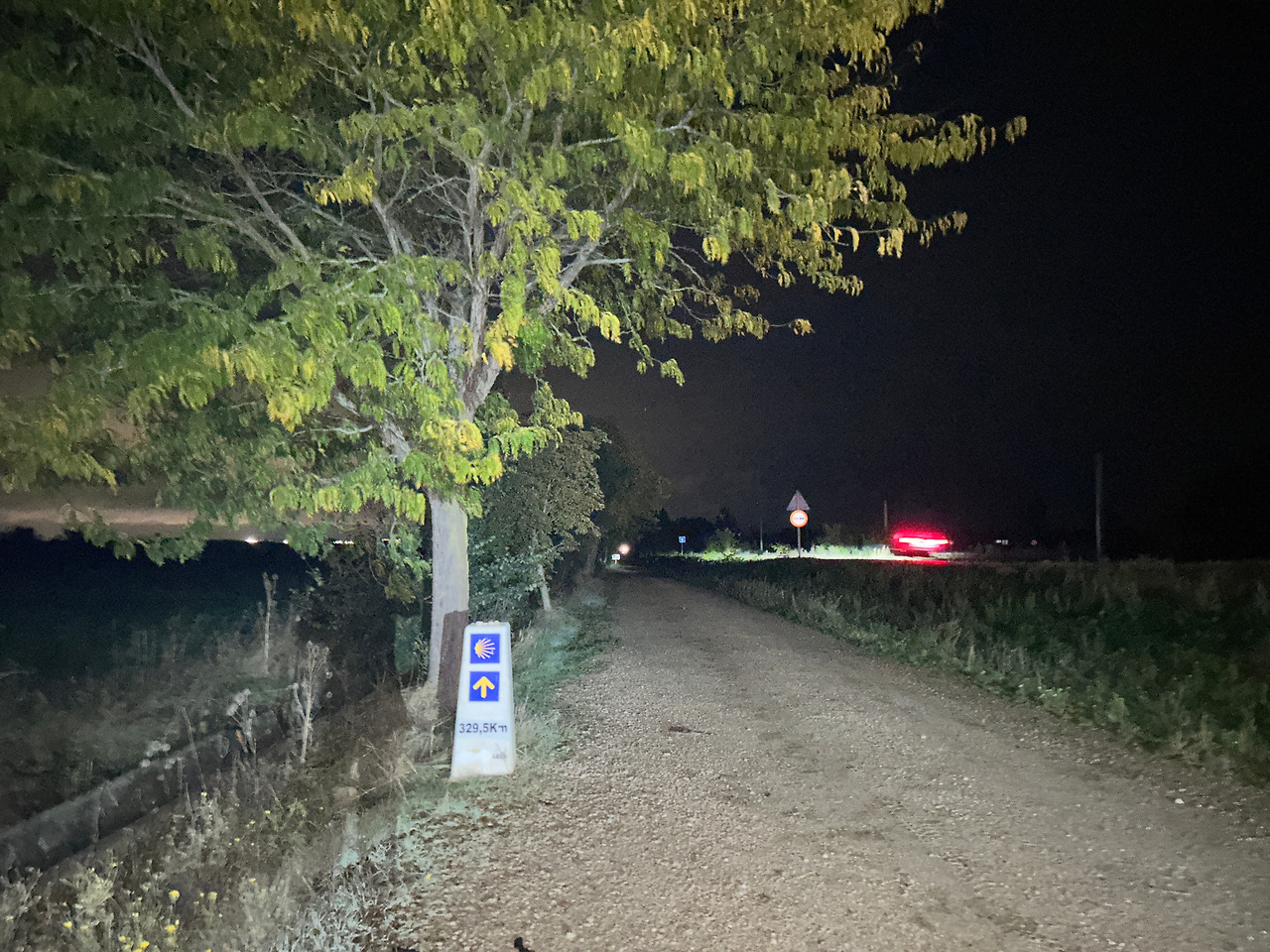 어제도 자다가 새벽에 몇 번 깼고 더 자려고 해도 잠이 오지 않았다. 원래 동행들과 같이 출발하려 했는데 잠도 안 오는데 누워있기 싫어서, 그리고 한편으로는 아무도 없는 새벽에 혼자 걸어보고 싶기도 해서 먼저 준비하고 혼자 길을 나섰다. 막상 길을 나섰지만 너무 깜깜했고 무서워서 못 걸으면 어쩌나 걱정했는데 다행히 뒤따라오던 순례자가 보였고 마을을 벗어나도 도로 옆을 걷는 거라 자동차 불빛이 있어서 무섭지 않게 걸을 수 있었다.