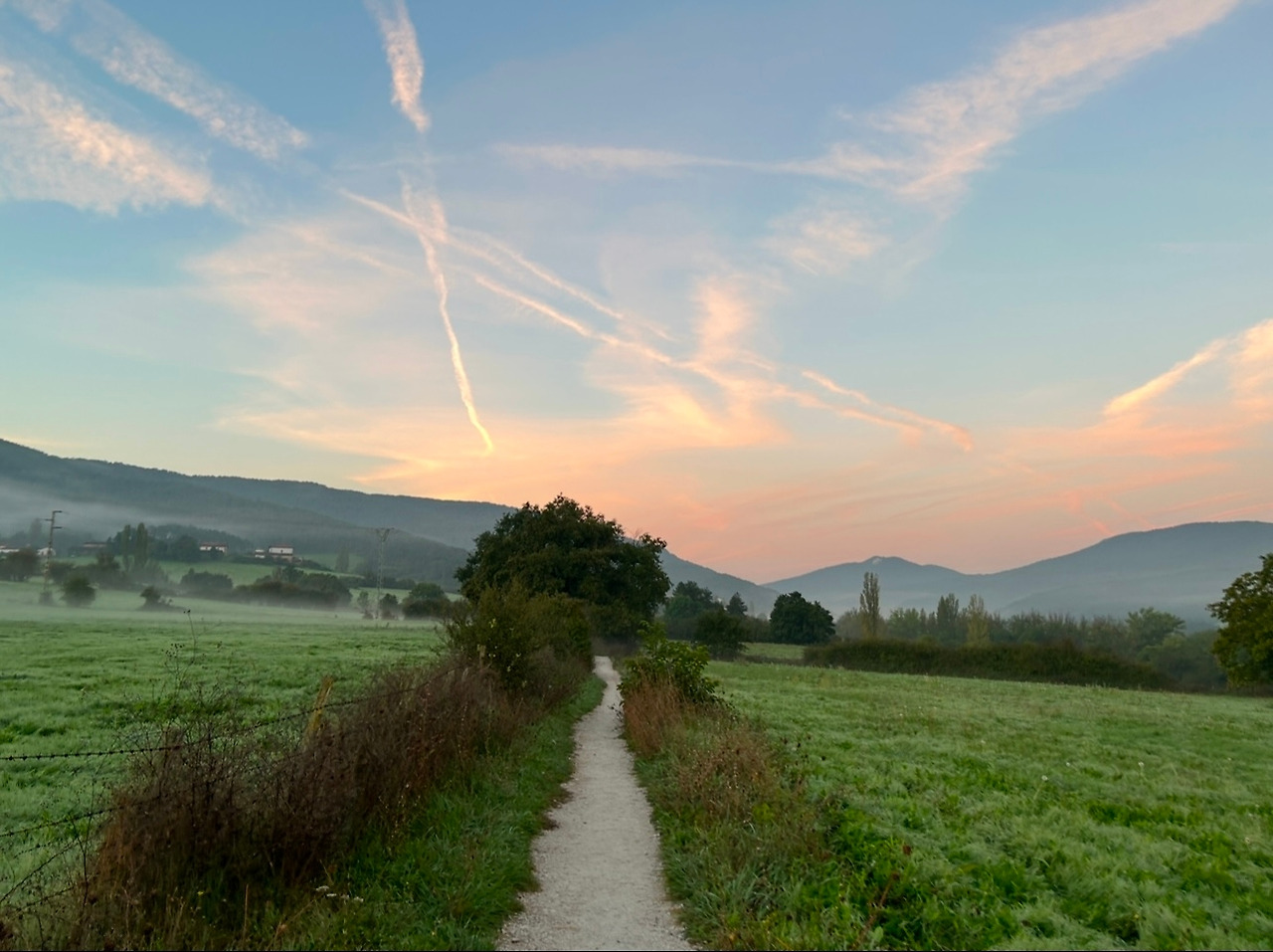 그분과 이런저런 이야기를 나누며 걷다 보니 해가 점점 떠오르며 밝아졌고 하늘은 핑크색으로 변하고 있었다. 너무 이뻐서 잠시 멈추고 하늘을 바라보며 사진을 찍었는데 ‘이렇게 이쁜 하늘을 한국에서는 본 적이 있었나, 한국에서도 이런 하늘을 볼 수 있었겠지만 하늘을 볼 여유나 관심이 없지 않았을까’ 생각하며 그 순간을 눈으로 담고 한참을 바라봤다.