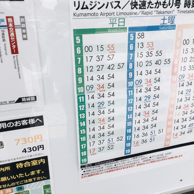 인천에서 구마모토까지는 1시간 20분 정도의 시간이 소요됩니다. 공항에서 시내로 가는 시간도 대략 40분 이내이죠. 도심 쪽으로 가는 방법은 여러 가지 있지만 복잡한 게 싫어 현장에서 버스 티켓을 바로 구매했습니다. 내리는 역마다가 가격차이가 있고 제가 내린 교통센터는 720엔(2017년 9월 기준)이었습니다. 공항으로 돌아갈 때도 마찬가지로 맞은편의 26번에서 버스를 탑승하시면 됩니다. 다시 공항으로 돌아가실 때 드리고자 하는 한 가지 팁이라면 구마모토 국제공항은 국내선에 비해 정말이지 작습니다. 농담하나 안 섞고 시골에 있는 버스터미널 수준의 대합실과 면세점(이라고 해봤자 동네 구멍가게 느낌.)이라 상당 부분 아쉽습니다. 국내선 쪽으로 이동하시면 지역특산물을 구경하시거나 구매하실 수 있습니다. 국제선에 가기 전 시간이 남으신다면 한 번쯤 가보시는 것도 나쁘지 않을 것 같네요. 물론 저는 가지 않았지만.. 대합실에서는 흡연실도 있고 나름의 작은 카페 겸 식당도 있습니다. 다만 출국대를 한번 입장하면 다시 나올 수가 없습니다. 출국대 안에는 흡연실도 카페도 없으니 입장하실 때 고민해보시길 바랍니다. 개인적으로는 대합실에서 시간을 보내다가 비행기에 입장할 때 맞춰 들어가거나 공항에 천천히 도착해도 될 것 같습니다.. 저는 오후 1시 14분 버스를 탔는데 그 후에 시간대를 타도 전혀 문제없을 것 같습니다.