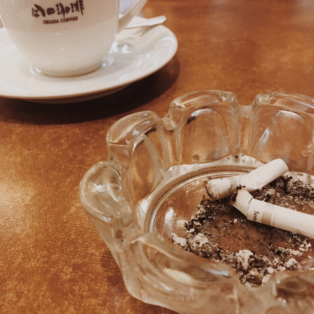구마모토에서 매일 들렸던 오카다 카페입니다.라고 말해도 2번 들린 게 전부이죠. 1박 2일 여행의 매력일까요? 2층의 다락방 같은 느낌과 바리스타들이 눈앞에서 내려주는 커피는 시각적으로도 후각적으로도 훌륭했습니다. 물론 미각적으로도 말이죠. 2번째 방문했을 때는 일본식 크림과 브라운 슈가를 추천하며 일본의 클래식 스타일의 커피라며 추천해줬을 정도로 다른 도시와는 다른 넉살을 가진 도시입니다. 순수한 선의라고 해야 할까? 간사이에서 느꼈던 가식적으로 느껴졌던 친절과는 달랐습니다. 25년 동안 비흡연자로 살다가 흡연을 하게 되었는데 흡연이 되는 카페는 저에겐 언제나 새롭고 신선합니다.