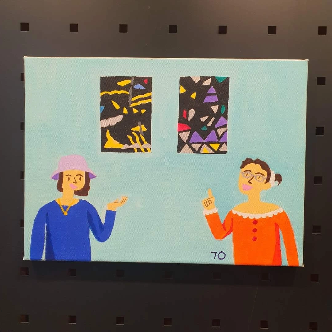 바다님의 그림 작품. 세상의 미묘함과 사회 시스템에 대해 대화하는 바다님과 나(는 아니지만) 같았다.