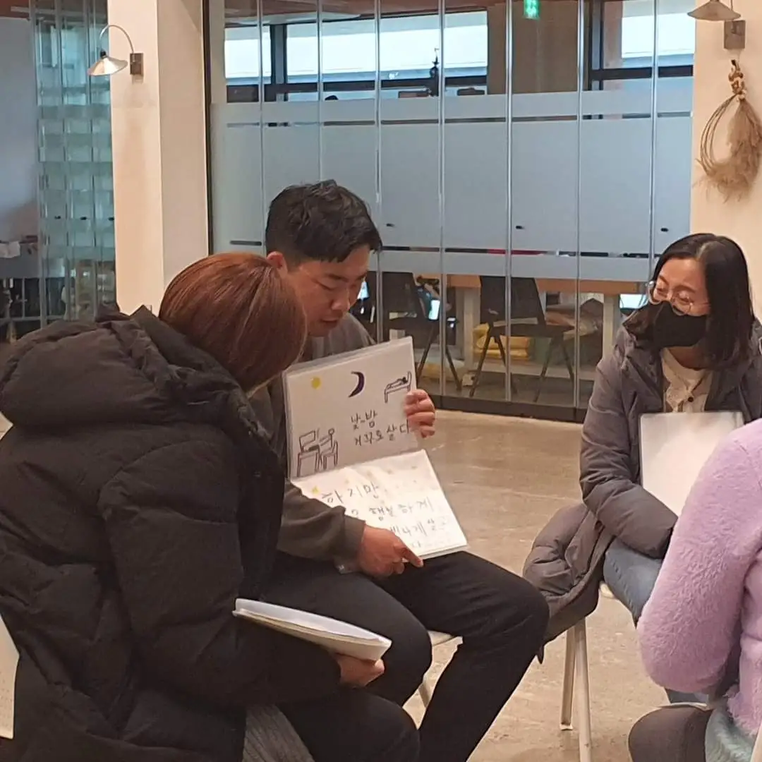 즉흥연극 워크숍 중 규상님, 활동에 자원해주신 혜진님, 혜인님