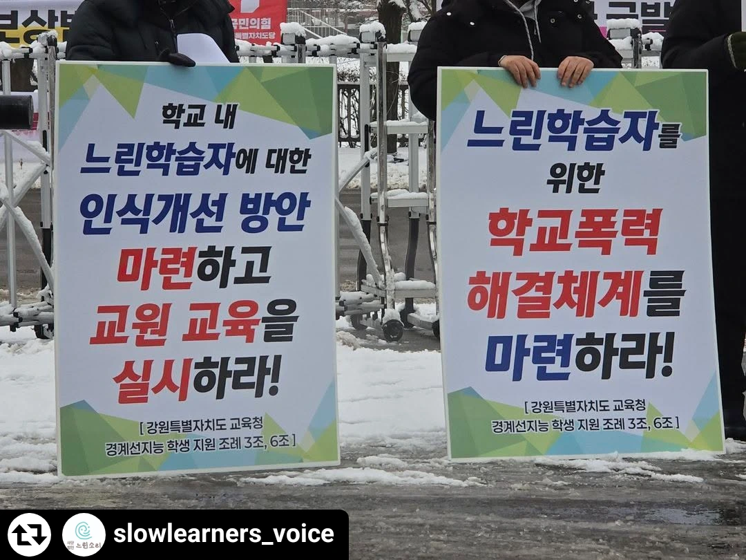 어제 강원도특별자치도교육청의 '느린학습자 학교폭력 지원체계 마련'을 촉구하는 기자회견에 연대하며 이런 생각이 들었습니다.