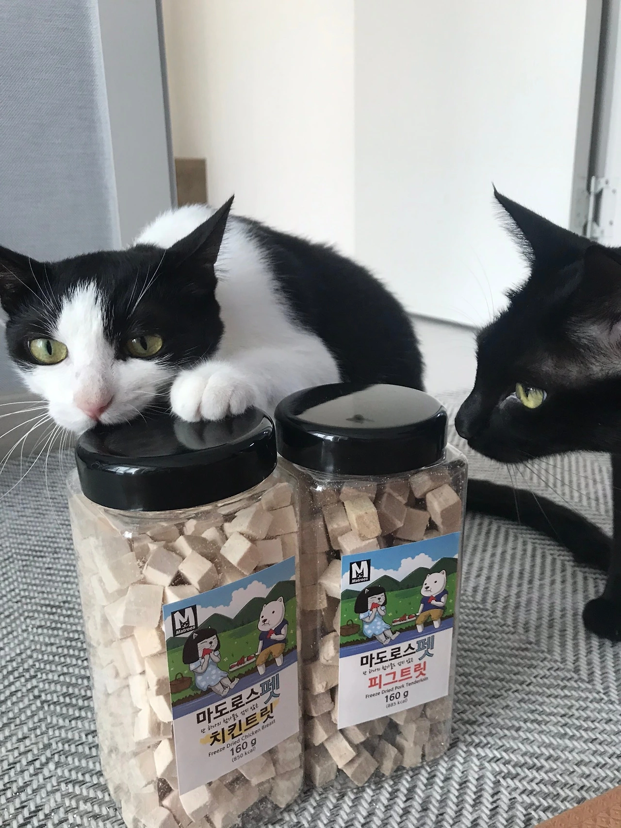 심심찮게 둘의 다툼을 목격하고 있고 그로 인해 내 스트레스 지수도 가파른 상승곡선을 그릴 때가 있지만, 둘을 키우는 어쩔 수 없는 '숙명'이라고 생각한다. 다만, 큰 싸움을 방지하기 위해 늘 신경을 곤두세우고 아이들의 스트레스가 높아지지 않도록 많이 놀아주려고 노력한다. 물론, 엄마가 놀아주는 것에 아이들이 얼마나 만족을 하고 있는지는 모르겠다. 더군다나 이제 각각 다섯 살, 여섯 살이 된 성인 고양이들이라 웬만한 낚싯대는 거의 다 가지고 놀아봤고, 웬만한 간식도 씹어 먹어 보았다. 그랬으니 놀고, 먹는 것들에 흥미가 조금 떨어져 있는 것도 사실이다. 요즘 그게 나의 가장 큰 근심이다. 뭘 해도 별 반응이 없는 아이들.