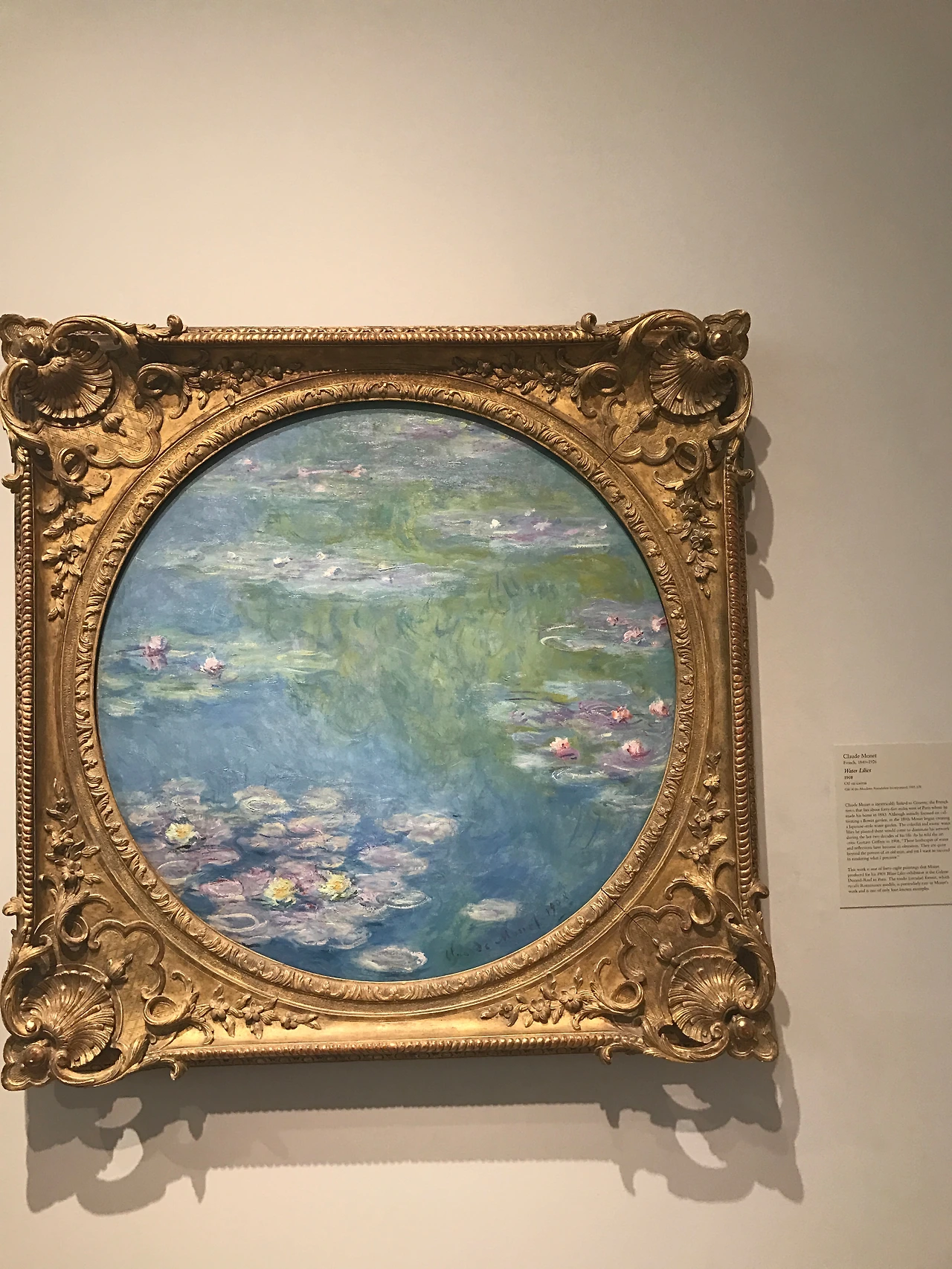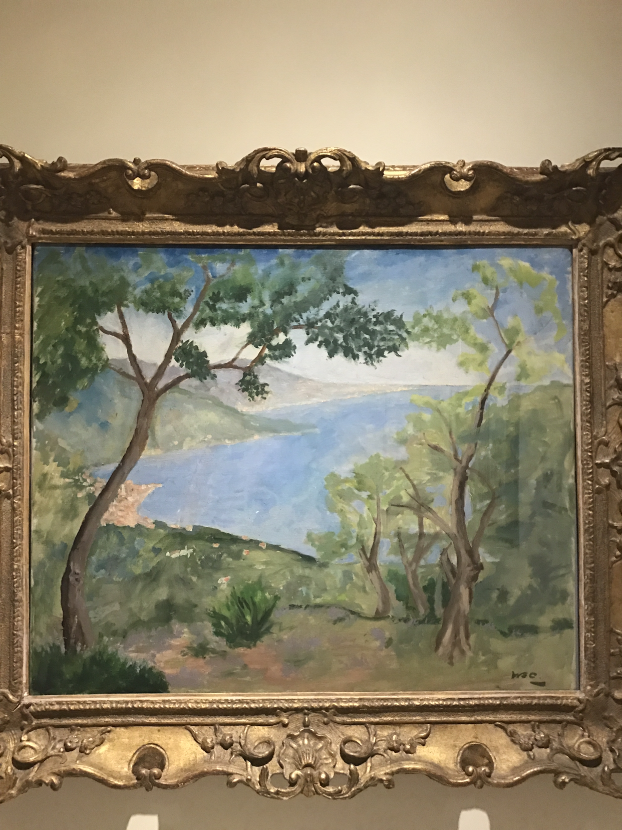 모네의 수련과 자연풍광은 언제나 미소를 선사한다. 두 점의 소품이 화려한 액자에 담겨있다. 뉴욕의 모마에 전시되어있는 거대한 연못을 떠올리니 이 작품은 마치 미니어쳐같다. 프랑스의 산과 들도 한국의 산과들과 같은 모습이다. 저 산 너머 구름마져도...