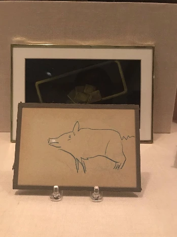 그리고 귀여운 돼지 그림은 처칠경이 직접 그린 자화상이다. 취미로 그림을 그리는 처칠경에게 지인들이 종종 초상화를 그려달라고 주문을 하면 이렇게 돼지 한 마리를 그려놓곤 했다. 실제로 처칠의 초상화를 그리게 된 사람은 그래험 서덜랜드라는 화가다. 영국 의회가 처칠의 80세 생일을 축하하기 위해 그레엄 서덜랜드를 추천하였다. 그러나 서덜랜드가 그린 사실주의 화풍의 늙고 볼품없는 처칠의 초상화가 마음에 안들었던지, 두 사람간의 신경전은 대단했다. 처칠경이 은퇴한 뒤 초상화는 그들의 저택에 처박혀있다가 부인이 불태워 없애버렸다. 처칠 내외가 이 초상화를 얼마나 싫어하는지 잘 아는 왕실의 매이드가 불태워버린 것이라는 설도 전해진다.