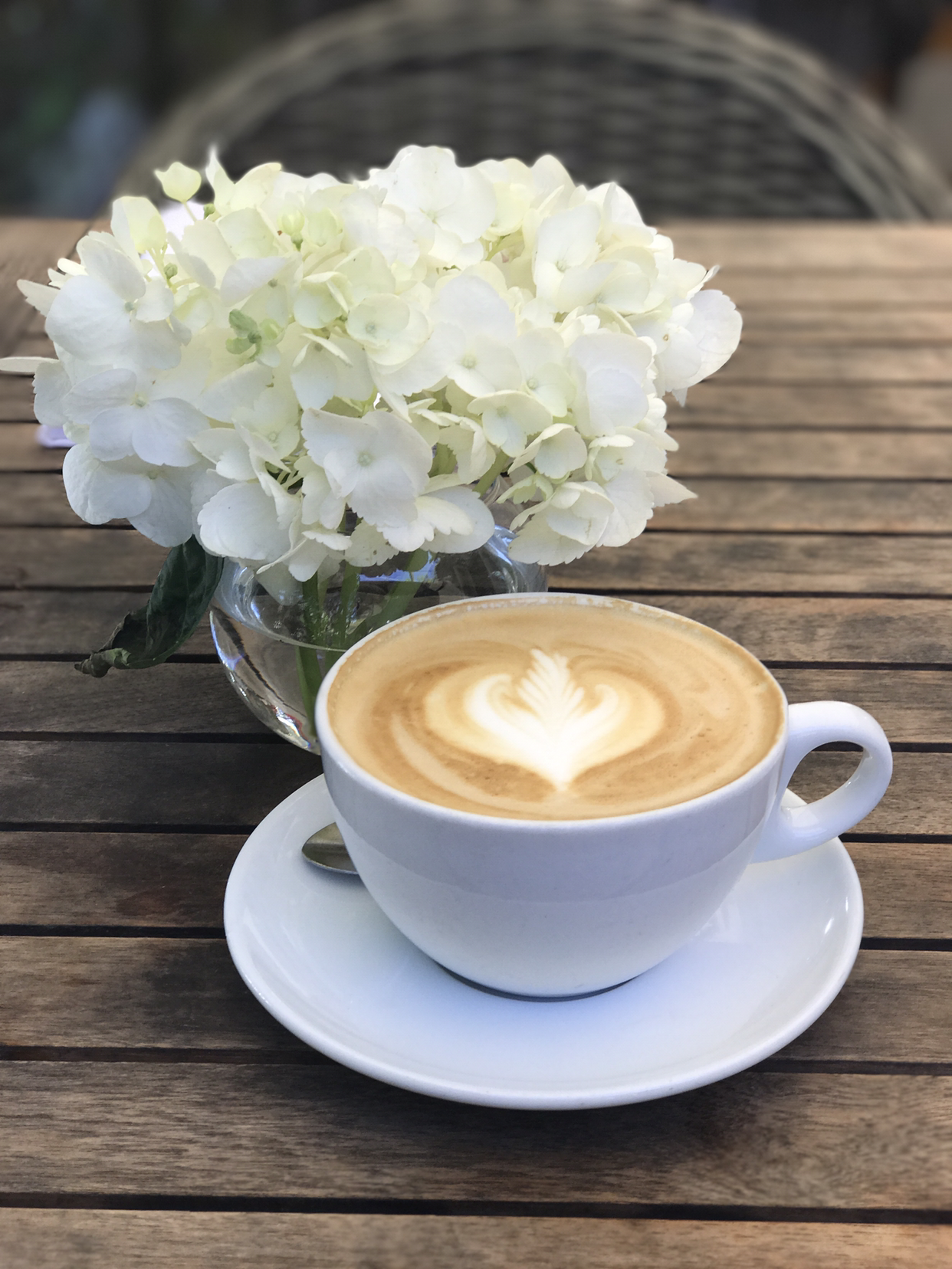 벽에 붙은 담쟁이의 흔적이 자연스러운 벽면 인테리어를 담당하고 있는 건물의 외벽. 그 외벽을 따라 테라스 카페 느낌의 공간이 있다. 커피 마시고 간단한 점심하기에 좋은 공간이다. 이 공간을 가꾸고 유지하기 위해 쏟은 그들의 정성이 고스란히 눈에 보인다. 라테는 아주 넉넉하고 맛도 좋은데... 이곳에 앉아 제대로 뽑은 에스프레소로 만든 라테를 마시고 있노라니, 라테 아트 클래스에도 한번 등록을 해 볼까 하는 엉뚱한 생각마저 든다.