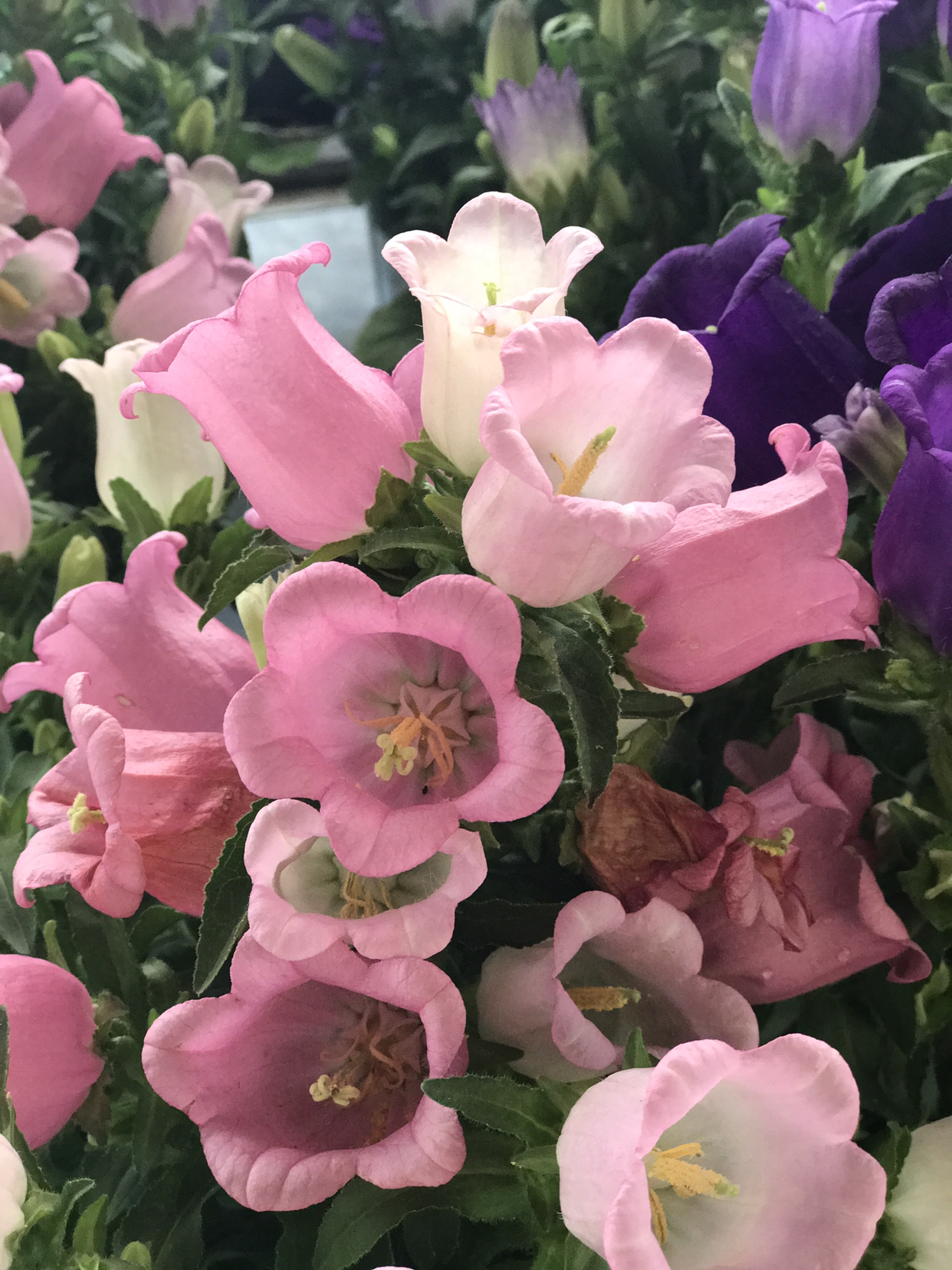 그린듯이 반듯한 종모양의 귀여운 캄파눌라가 투톤으로 가득하다. 조물주는 참으로 아기자기 배려도 깊으시고,
