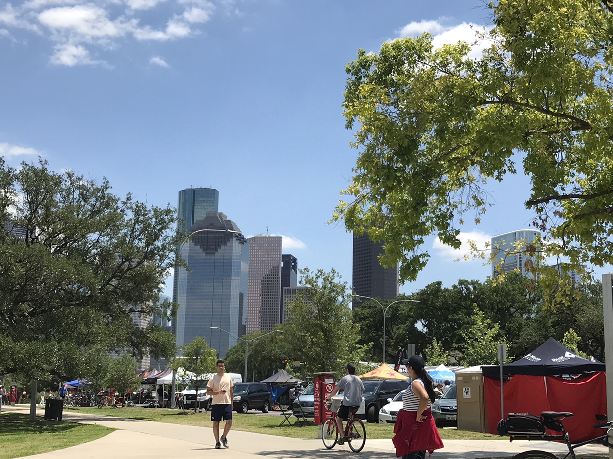 자전거 타기를 사랑하는 동네 사람들은 모두 시내 앨란 파크 웨이에 모여들었다.