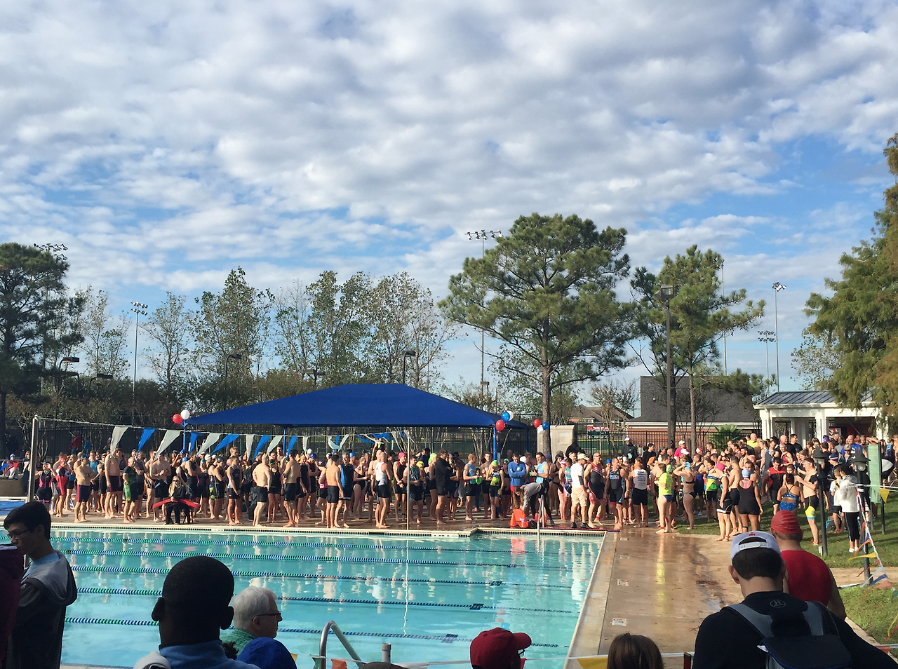해마다 경기 참가자들이 한 눈에 들어오는 이 위치에서, 가을이 왔음에도 여전히 하늘에 예쁜 그림을 그리는 구름과, 차거운 공기와 대조되는 따뜻하게 데워진 수영장을 사진에 담는 일은 즐겁다. 눈 앞의 풍경을 기분좋게 바라보고 있노라면, 10월 중순의 싸늘한 날씨에 almost naked 로 수영하고 달리고 자전거를 타는 풍경이 연출될 수 있는 문명화된 지역은 손에 꼽을 수 있을 정도로 몇 안될거란데 생각이 미치고 그러다보면 여름의 지긋한 더위조차 그리워지기도 한다. 얼음이 얼 정도로 추운 날은 드물지만 겨울은 역시 겨울인데, 겨울에도 야외 수영장은 매일 저녁 풀가동이다. 그러고보면 여기서는 "이건 이래서 안되고, 저건 저래서 안되는" 제약은 없는 것 같다. 그래서 별로 마음 답답할 일이 없는 것 같기도 하다.