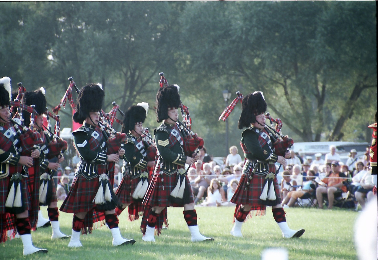 스코틀랜드의 치마 (킬트)를 입은 군악대는 1725년에 창설되어 워털루 전투에서도 공을 세웠고 1, 2 차 세계 대전 때도 뛰어난 활약을 했다는 기록이 있다. 지금도 그들이 연주하는 Scottland the Brave의 쟁쟁한 소리가 귀에 들리는듯하다.