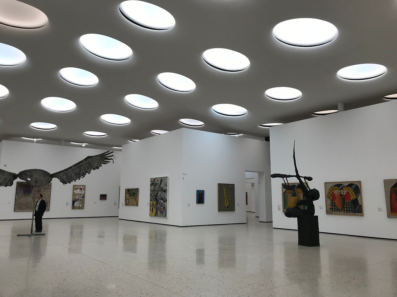 2차 대전 이후 제작된 작품들이 전시되어 있었던 지하 컨템퍼러리 관에서 미술작품들 보다 눈길을 끌었던 것은 지하 건물의 천장에 둥근 홀처럼 나있던 조명이었다. 자연광인지 인공조명인지 실내에 있을 때는 명확하지 않았다. 그것은 또한 뉴욕의 메트로폴리탄 미술관- 브로이어 분관의 현관 천정을 떠올리게도 했다. 스케일이나 구조로 보아서는 멧 브로어 어가 Stadel Museum의 이 신비로운 천창을 흉내 낸 것 같다는 생각도 들었다.