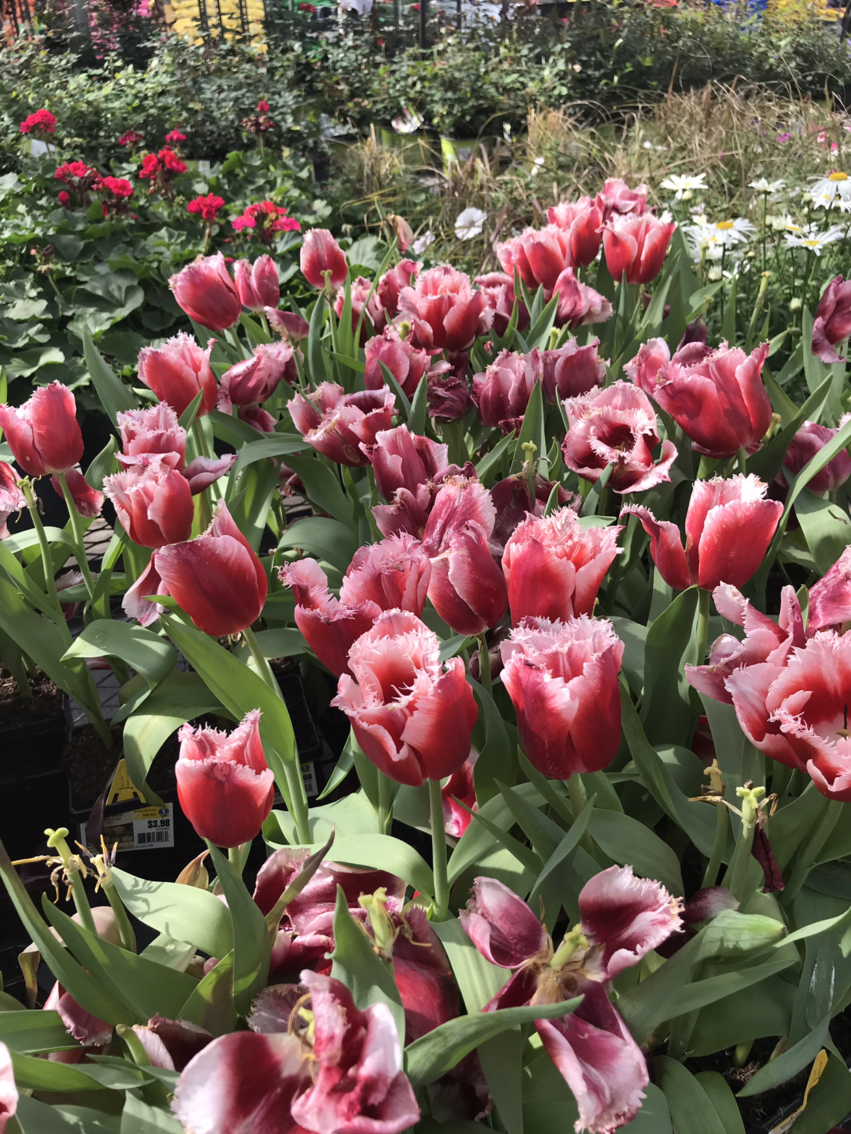 가든 센터는 판매를 위해 진열된 온갖 화초들로 장관을 이루었다. 꽃잎의 끝부분이 가벼운 털로 장식된 것 같은 화려한 튤립 코너는 축제 분위기를 띄고있다.