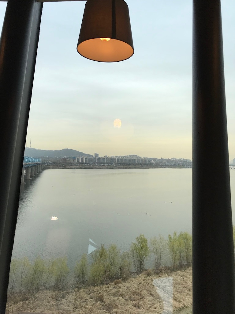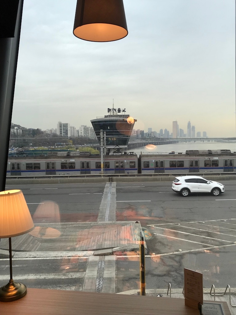 공연장을 겸한 루프탑이자 야외 전망대는 계단식 스탠드도 마련된 작은 공간이었는데, 그곳에서는 움직임이 정지한듯 보이는 한강과 왼쪽으로 오전에 다녀왔던 국립현충원이 벚꽃 속에 안겨있는 풍경이 보이고 반대편으로는 고충 건물들이 한 눈에 들어왔다. 이 강 위로 낙하할 저녁의 석양과 불빛의 보석으로 가득할 야경은 또 얼마나 아름다울 것인지..... 그때는 한국에 머무르는 동안 매일 저녁 이곳으로 차를 몰아오고 싶을 지경이었다. 그러나 해가 지기까지는 몇 시간이 남아있었고 아버님은 강아지를 안고 전망대 입구에서 기다리고 계셨다. 지체할 수가 없었기에 야경을 기다리는 일에는 아쉬운 안녕을 고해야 했다. 지나간 시절의 이미지와 현재의 실제를 연결하는 그 공간은 새로운 그리움의 대상이다. 매일같이 그 다리를 건너 출퇴근을 하는 친구는 퇴근 시간, 강과 도시 위로 내리는 석양의 황홀함과 야경의 아름다움을 자랑했지만, 아직까지 사진 한 장 보내주지 않고 있다.