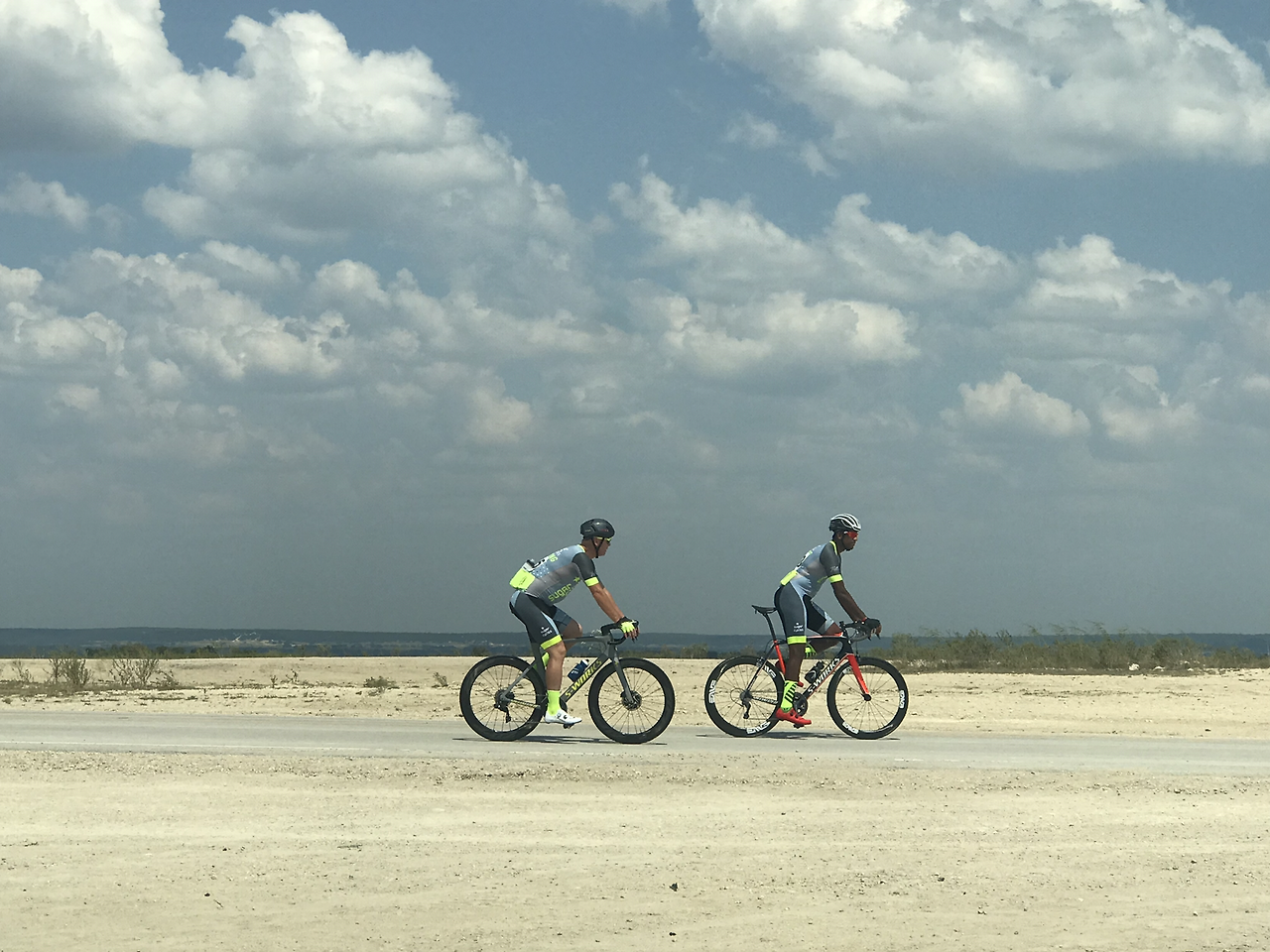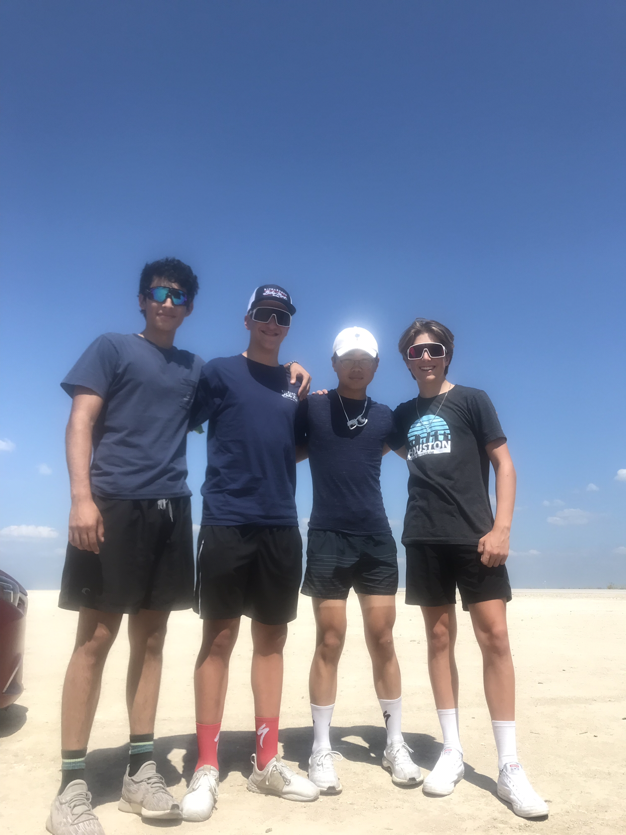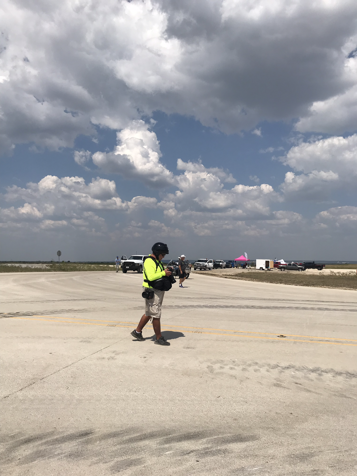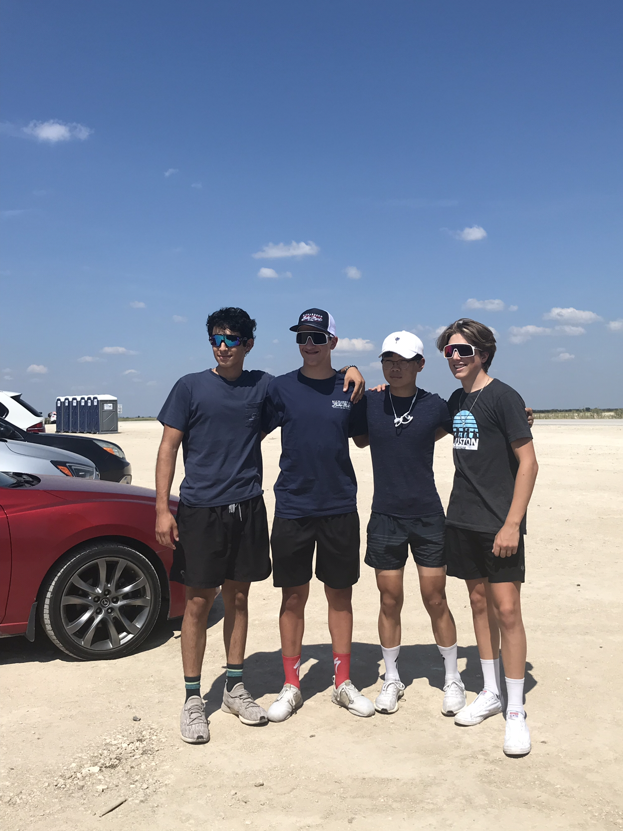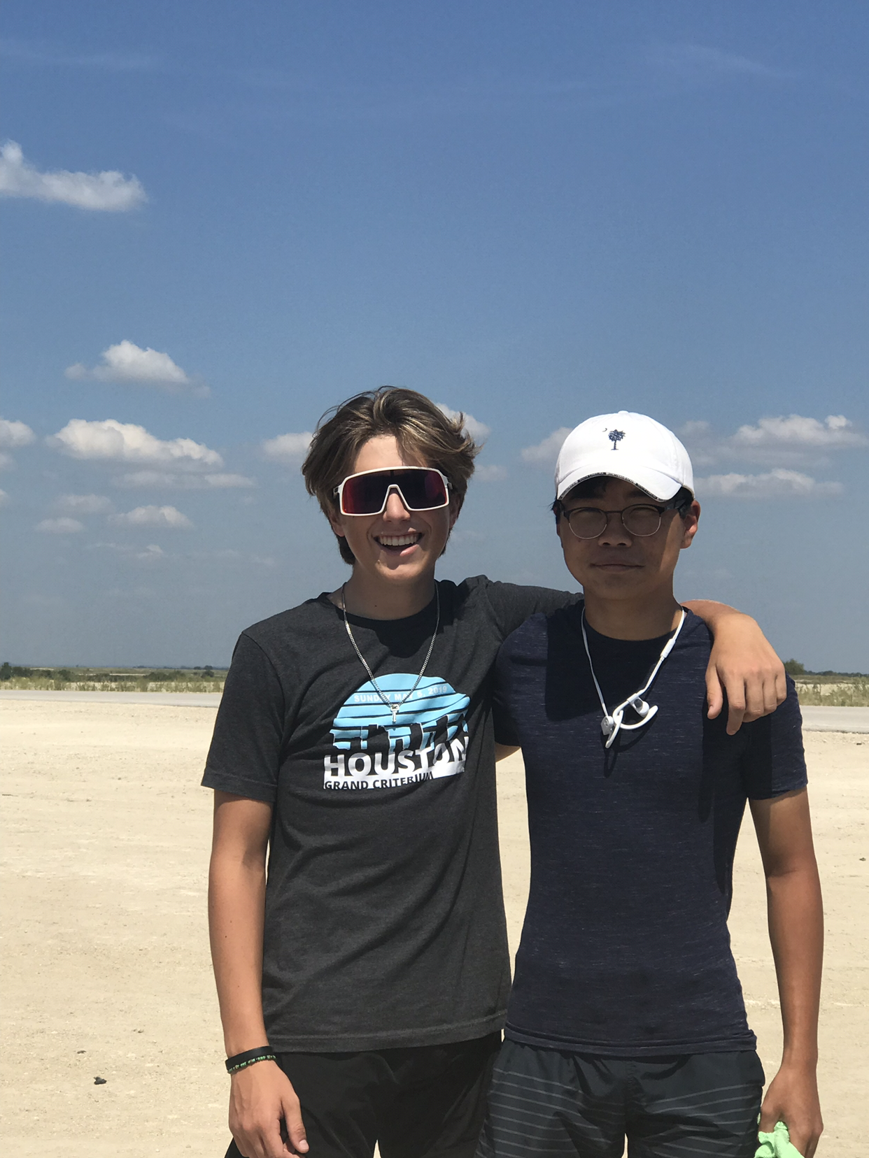 아들은 중부 텍사스 사막의 이 뜨거운 오후에 세시간에 걸친 레이스를 성공적으로 마쳤다. 선두 그룹으로 한 시간 여를 달리고 있었으니, 타이어가 펑크나는 바람에 시간이