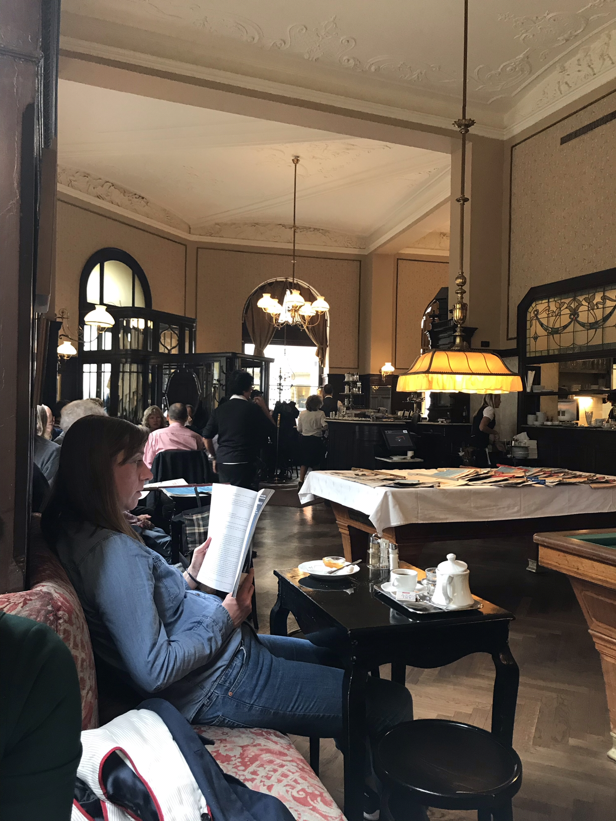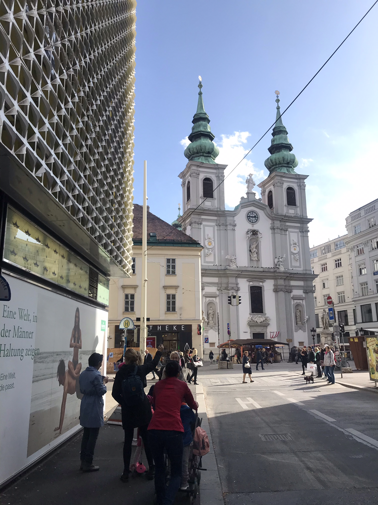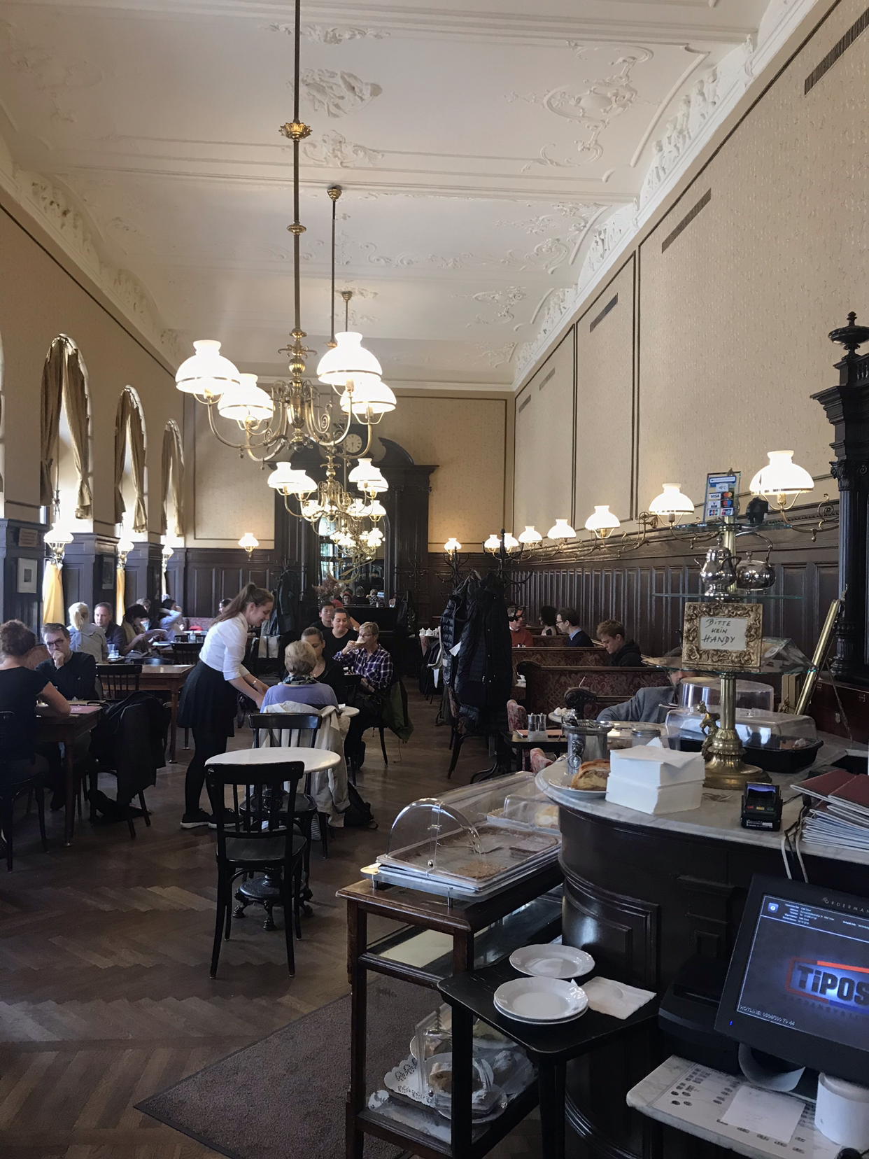 유럽 여행은 어디까지나 걷고 걷고 또 걷는데 의의가 있는 바, 일주일간 매일 걸었던 거리가 약 10km/day, 15000보 정도 되었다. 든든하게 식사를 한 후 아침부터 점심때까지 걸었으나 전혀 허기가 느껴지지 않았지만, 지친 다리를 쉬기 위해 한번쯤 카페엘 들러야 했으니, 백 년도 더 된 오래된 카페로 가득한 도시에서 당연한 듯 sperl cafe 스펄 카페를 골라 들어간 것이 둘째 날이다. 셋째 날은 미술사 박물관으로 사용되고 있는 호프 버그 왕궁의 2층 카페테리아에서 점심을 먹었다. 스펄 카페는 25년 전 소년과 소녀의 티를 갖 벗은 줄리 델피와 에단 호크가 심야의 비엔나를 종횡무진 걸어 다니다 들렀던 바로 그 심야의 카페다. 스펄카페 역시 굉장히 높은 천정에 세월을 증명하는 듯 부스의 패브릭은 닳아 있다. 미국에서는 절대 안 먹는 휘핑크림 얹은 커피, 아인슈페너를 180년 된 스펄 카페에 온 김에 한번 마셔 주었다. 얇은 밀가루 반죽 위에 사과 슬라이스를 산처럼 얹고 계피와 설탕을 술술 뿌려 밀가루 반죽을 통째로 여러 번 둘둘 말아 구운 애플 스트루델은 켜켜이 쌓인 사과의 결을 셀 수 있다. 일습으로 판매되는 애플 스트루델 키트를 사다가 아이들에게 자주 구워주곤 했으나, 그것은 애플 스트루델의 이름과 향기만 빌린 손쉽게 굽는 빵이었다. 홑이불처럼 얇고 길게 펼쳐놓은 밀가루 반죽에 사과 슬라이스를 잔뜩 얹고 시나몬 설탕을 술술 뿌려 돌돌 말아 굽는 것이 재미있어 보여서 여행을 떠나오기 전부터 애플 스트루델을 한번 구워보고 싶었지만, 게으름은 호기심보다 힘이 셌다. 형태가 뭉개진 진득한 애플 코블러나 애플파이보다 비엔나의 애플 스트루델은 훨씬 산뜻하니 집에 돌아가면 적은 양이라도 만들어 보고 싶어 졌다. 우리 앞자리에 앉은 젊은 부부들이 갓난아기를 데리고 와 식사를 하는 모습은 무척 편안해 보였다. 한 상 받아든 식사를 마치고도 느긋하게 오후를 즐기며 아기를 얼르다가, 창 밖을 내다보다가, 카페에 들어온 사람 나가는 사람들을 관찰하며 시간을 보내는 젊은 부부들에겐 세상에 바쁠 일이라곤 없어 보였다. 평화로운 평일 오후.