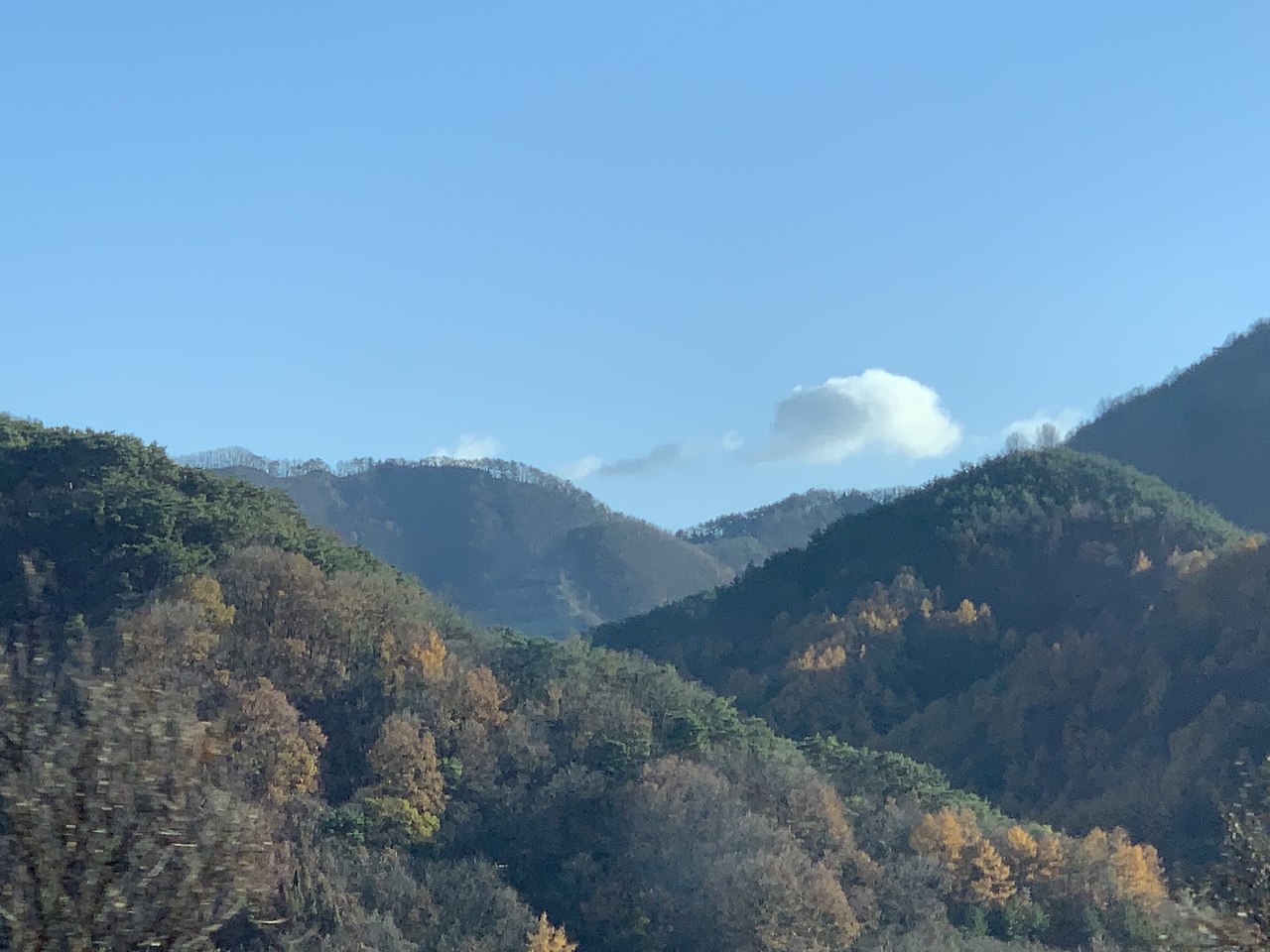 높은 능선 아래로 키가 작은 능선들이 어린 동생들 처럼 나란히 서있다.