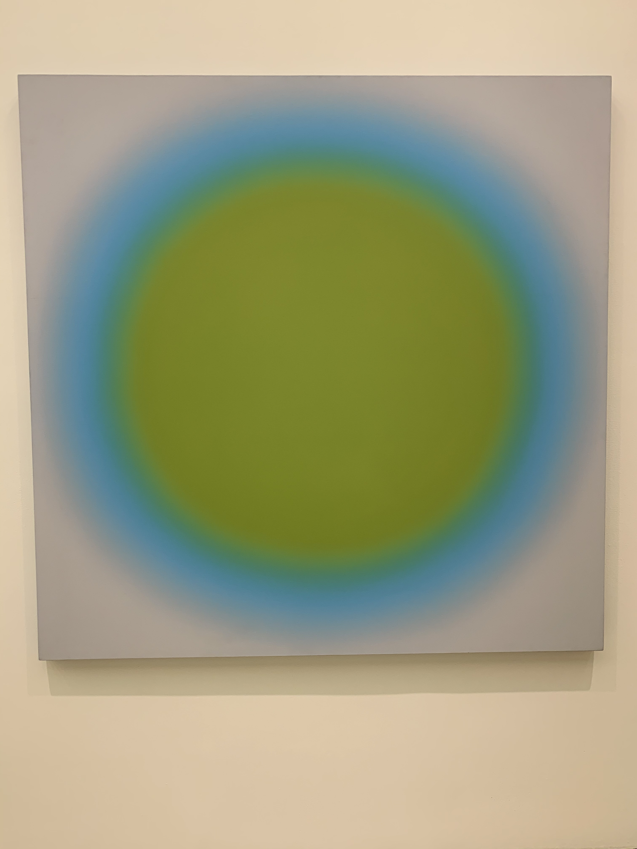 녹색 코로나라는 단어가 떠오르는데로스코 그림을 보듯이 가까이서 보면 이 거대한 원이 숨을 쉽니다. 내 몸의 펄스가 원이 숨쉬는 것처럼 느껴지는것인데 하여간 강한색이 아니고 녹색이라 나쁘지 않았습니다. 간츠팰트 이펙트를 유도하려는것 같군요.