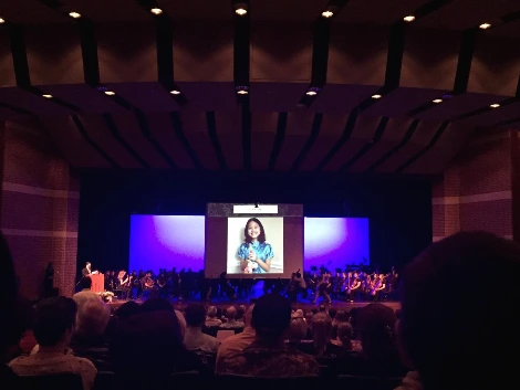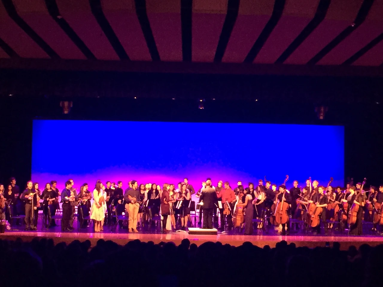중학교와 고등학교 오케스트라는 가을, 크리스마스, 그리고 5월의 학기말 세 번의 콘서트를 개최하는데, 고등학교의 경우 5월 콘서트는 졸업생 시니어들을 위한 farewell concert 형식이다. 가을 콘서트와 크리스마스 콘서트는 보통 한 시간 남짓이면 끝나는데 반해, 5월 콘서트는 좀 긴 편인데 올해는 유독 길다. 졸업생 한 사람 한 사람의 길지 않은 17년 음악 인생을 일일이 낭독해 주며 레드 카펫을 깔아주느라, 객석에 앉아 듣는 부모들은 음... 배도 고프고 지루하다. 네 개의 수준별 오케스트라가 연주를 하는 중간중간 졸업생을 소개 한다. 음악 한곡 들으시고, 졸업생들 소개 들으시고, 음악 한곡 들으시고, 또 졸업생 소개 들으시고.... 그러니까, 졸업생 시니어 한 사람 한 사람을 마치 골든 글로브나 아카데미 시상식의 수상 후보들이라도 되는 양, 그들의 일대기를 담은 사진들을 대형 화면에 띄워놓고, 누구누구는 몇 살 때 음악을 시작했으며, 장래 하고 싶은 일은 무엇이고, 고등학교 시절의 추억이며 간단하고 짧은 졸업 소감 등등을 오케스트라 디렉터가 낭독해 주는 동안, 드레스며 턱시도 등으로 성장을 한 졸업생 한 사람 한 사람은 그 사진 아래를 우아하게 지나가는 것이다. 오늘은 여학생들의 의상이 화려고, 졸업생들의 솔로 연주가 다양하다. 가을부터 스탠포드를 다니게 되었다는 생상의 백조를 첼로독주 하는 여학생으로부터 시작해, 비올라 콘체르토는 아주 부드러운 소리를 냈으며, 파가니니 랩소디를 피아노 협주하는 남학생도 멋있었다. 졸업생 다운 꽤 공들인 연주들이었다.