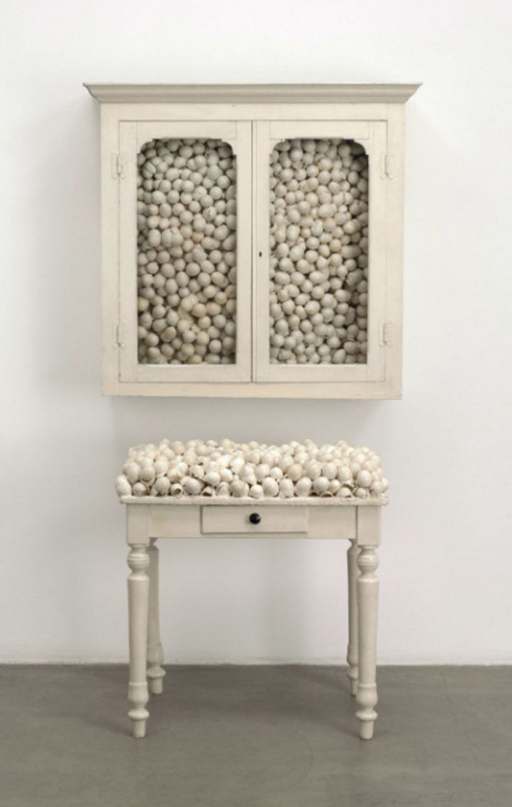 Marcel Broodthaers. Armoire blanche et table blanche (White cabinet and white table). 1965. The Museum of Modern Art, New York. © 2016 Estate of Marcel Broodthaers / Artists Rights Society (ARS), New York / SABAM, Brussels