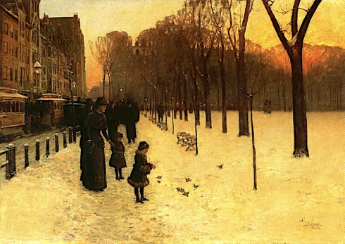 하삼의 이 그림은 눈쌓인 겨울 공원의 냉기와 오렌지빛 황혼과 가로등의 온기가 동시에 느껴진다. 따뜻한 커피 한잔 손에 들고 싸늘한 거리를 걷고 싶은 기분이 된다.