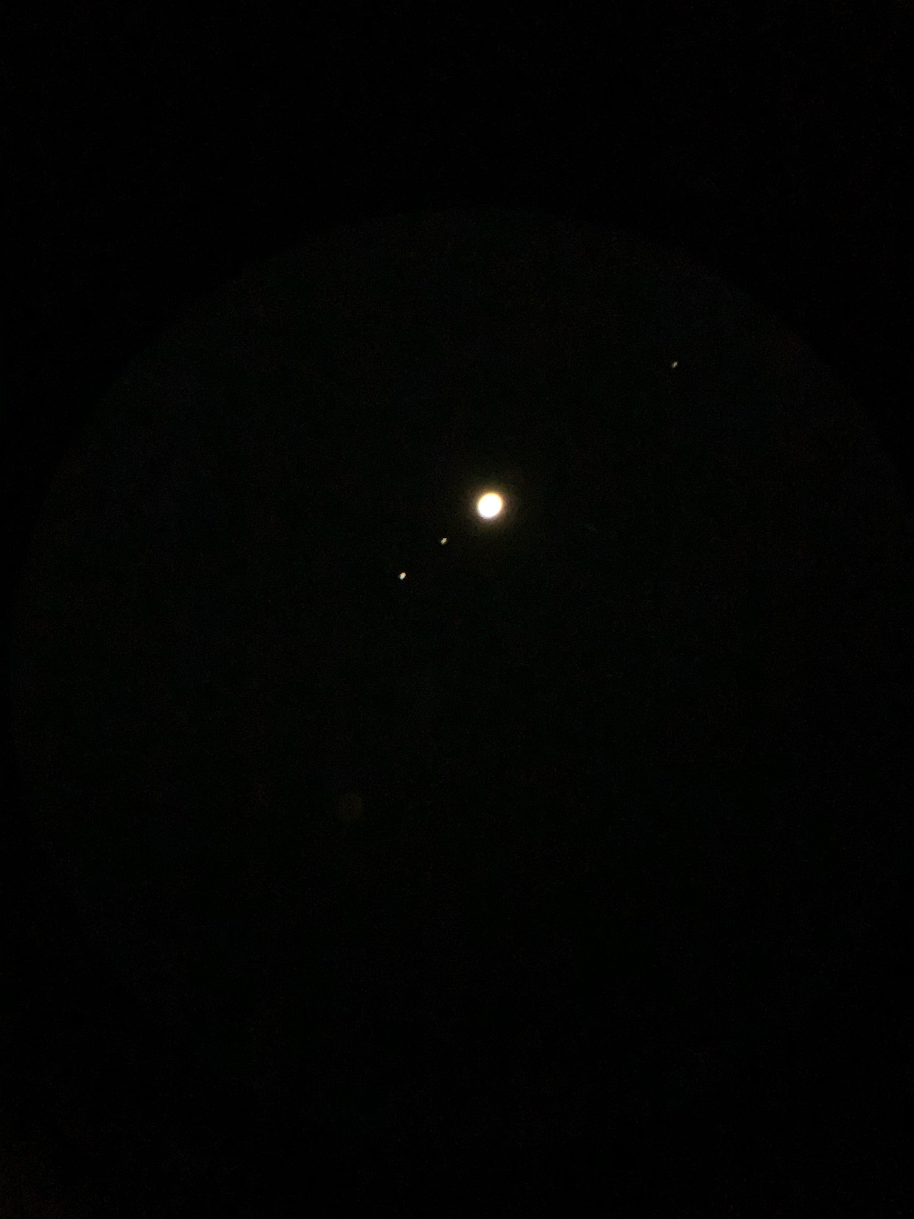 시간의 실체를 증명하는 목성과 그의 위성들은 오늘도 변함없이 나란히 섰다가 흩어지기를 반복 중