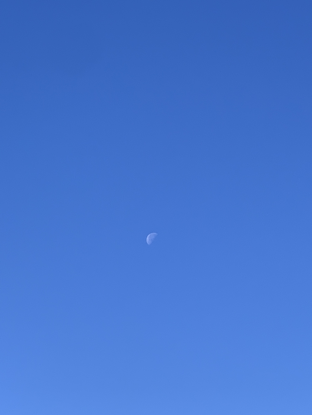더 이상 균질할 수 없이 고르게 푸른창공 위로 달은 투명한 얼굴을 반쯤 드러냈다.