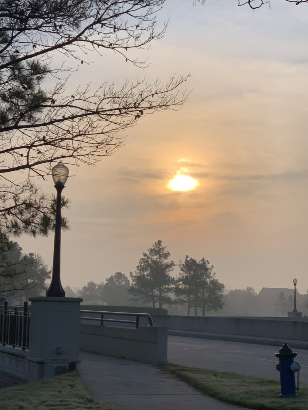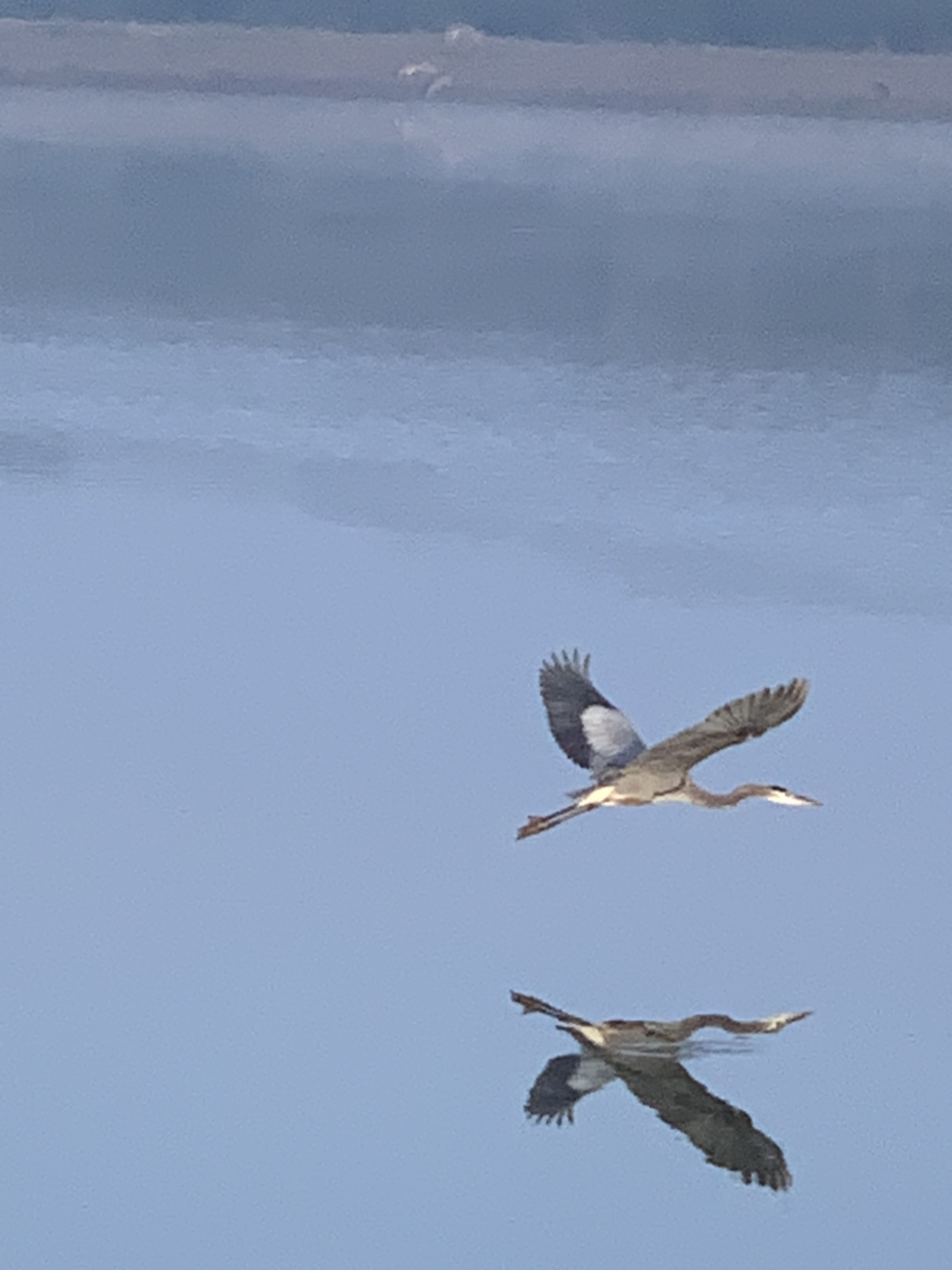 지난 해 오늘 아침엔 황금빛 태양이 젖은 나뭇 가지 사이에 걸려 있었고, 큰 물새의 비행을 포착하기도 했다.