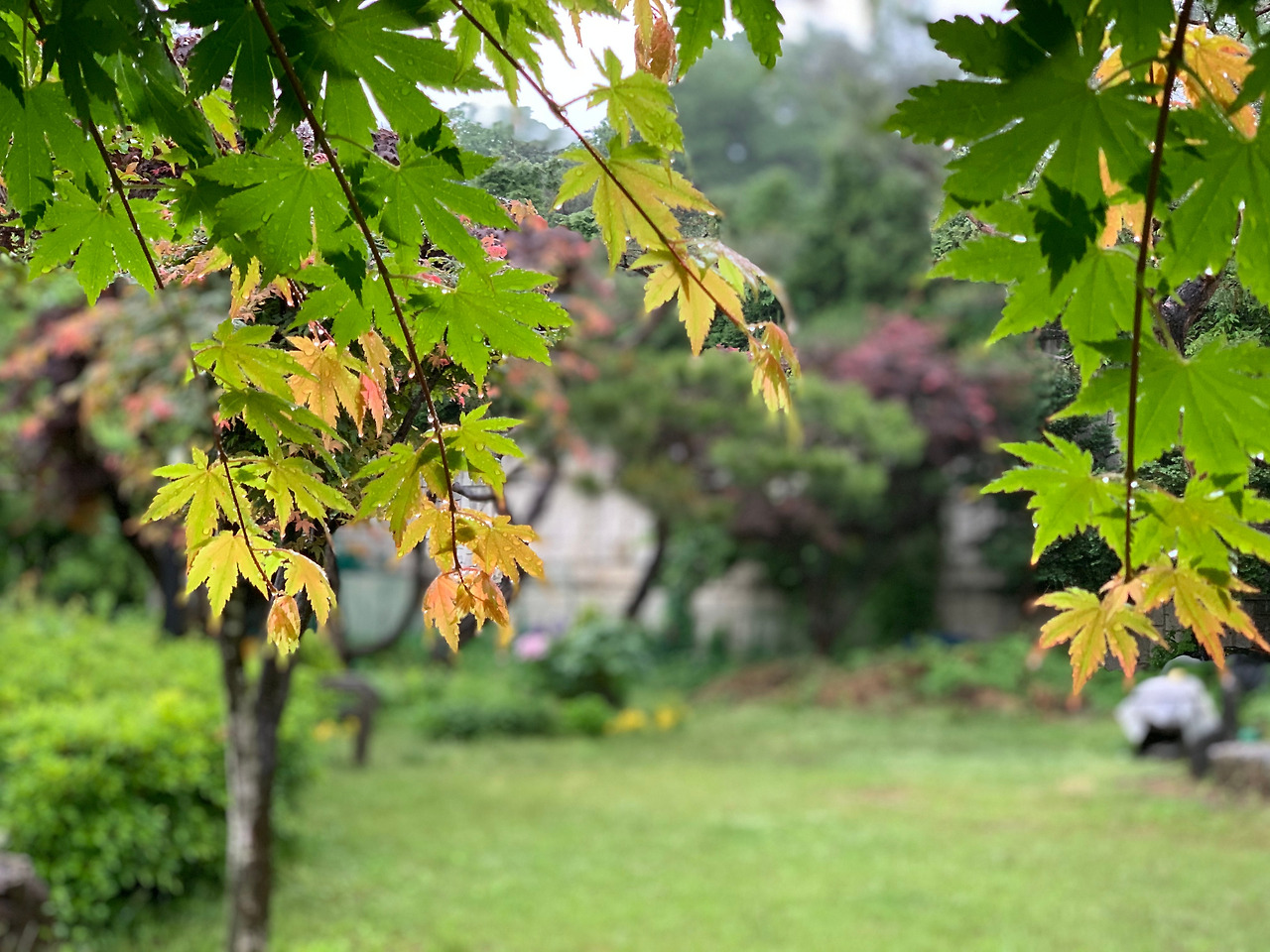 거실 가득 통유리창 건너 맞은편의 산등성에서는 비그친 후 안개가 피어오르곤 했다. 그 무엇보다도 그리웠던 풍경은 이런 것이었지. 산지형 국토가 보여줄 수 있는 가장 한국스런 풍경. 어머니께서 마련해 놓으신 캐시미어 스웨터의 부드러운 온기가 더없이 따뜻하게 느껴지던 늦봄의 그 시간. 어느 오후엔 가벼운 실내복을 입고 마당에 나왔더니 한기가 훅끼칠 정도로 기온이 떨어져 있었다. 한 계절이 떠날 준비를 하고 있지만 다음 계절이 미처 당도하지 못한 채 어리둥절한 시간.