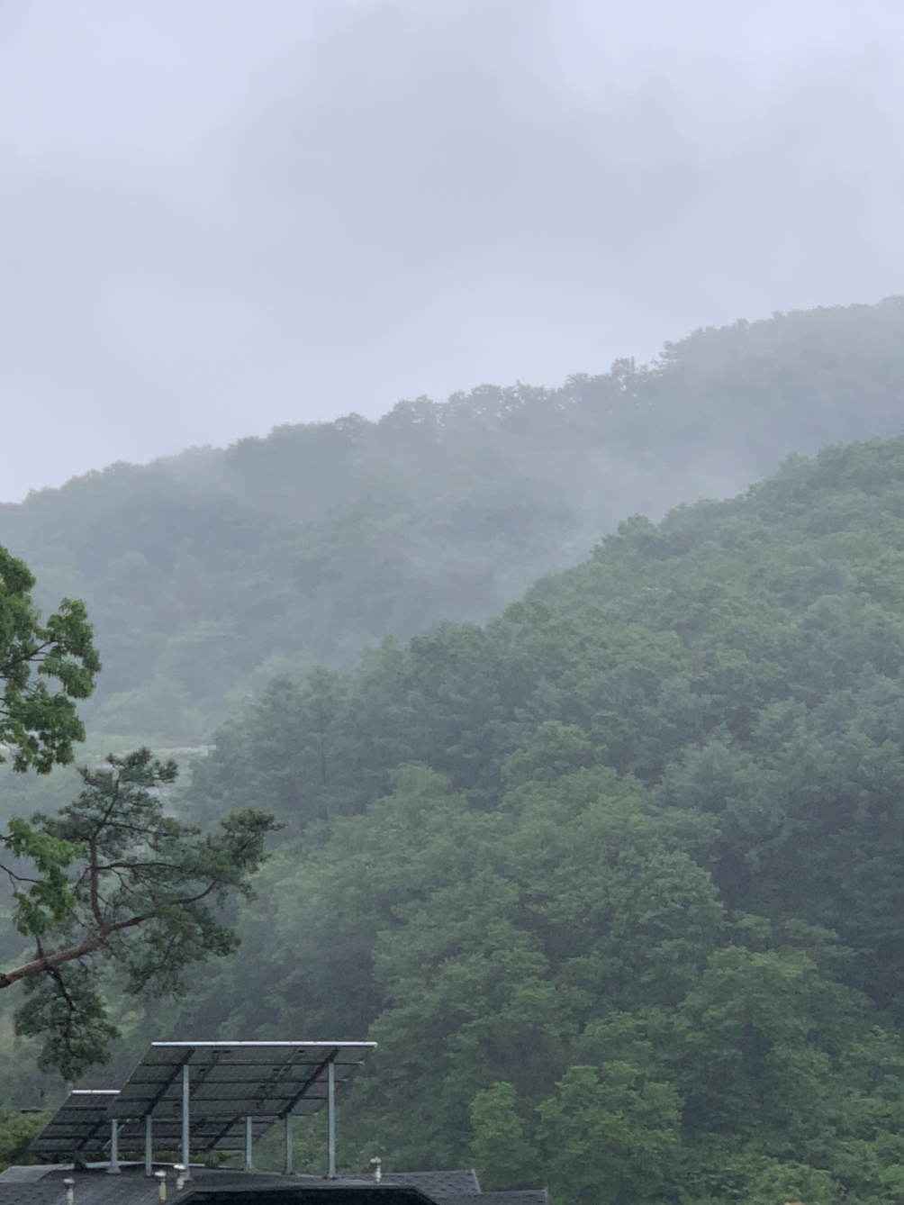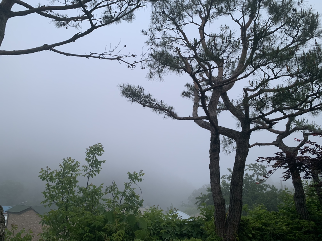 안개가 서린 아침의 동양화 같은 풍경에는 솔향기 그윽하게 베어있다. 그러나 그 분위기 넘치던 묵화같은 풍경의 배경 음향이 꼬끼요~~였을 줄이야. 산속 마을의 정적을 깨트리며 멀리 퍼져가던 꼬끼오.
