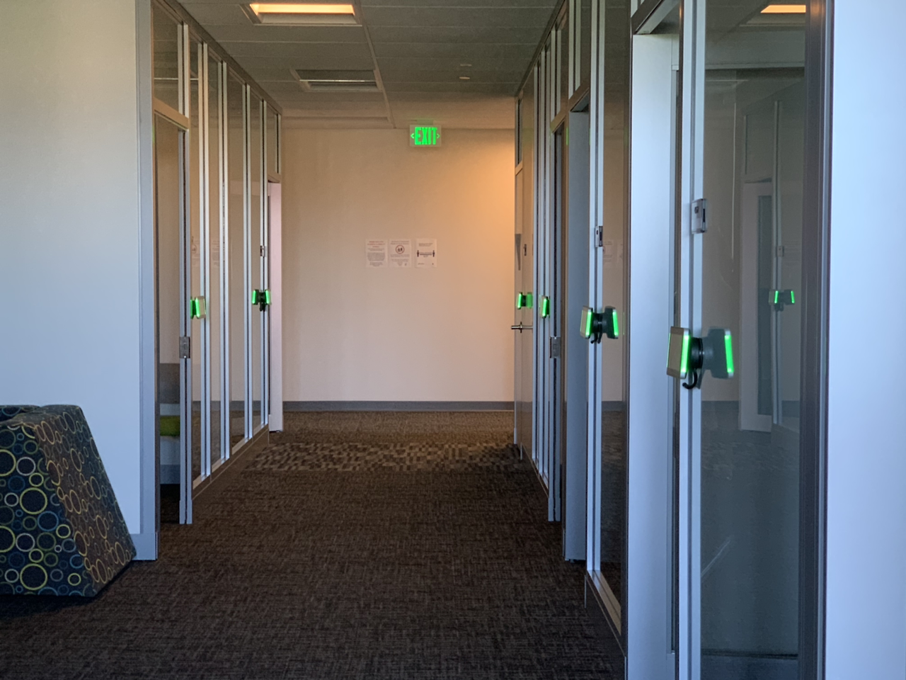 아이가 속해 있는 초음속 연구실은 컴퓨터 시물레이션을 주로 하는 이유로, 공대 연구실이라기보단 깔끔한 컴퓨터 도서관 같았다. 아빠 회사와 실내 구조가 거의 유사한 대학 연구실이라니…. 초록색 불이 켜진 저 키패드에 카드를 스캔하고 각자의 방으로 들어간다.