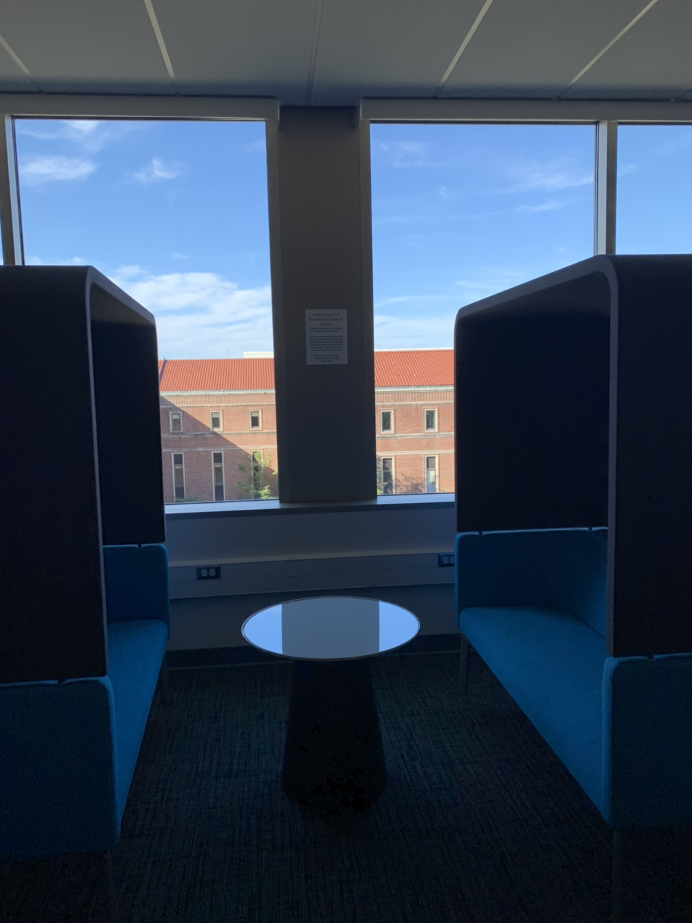 휴게 공간 건너로 보이는 물리학과 건물의 붉은 지붕과 파란 하늘의 대비가 인상적이었다. 자로 잰듯 반듯한 건물 정면 이마에 피직스라고 명찰을 박아놨다.