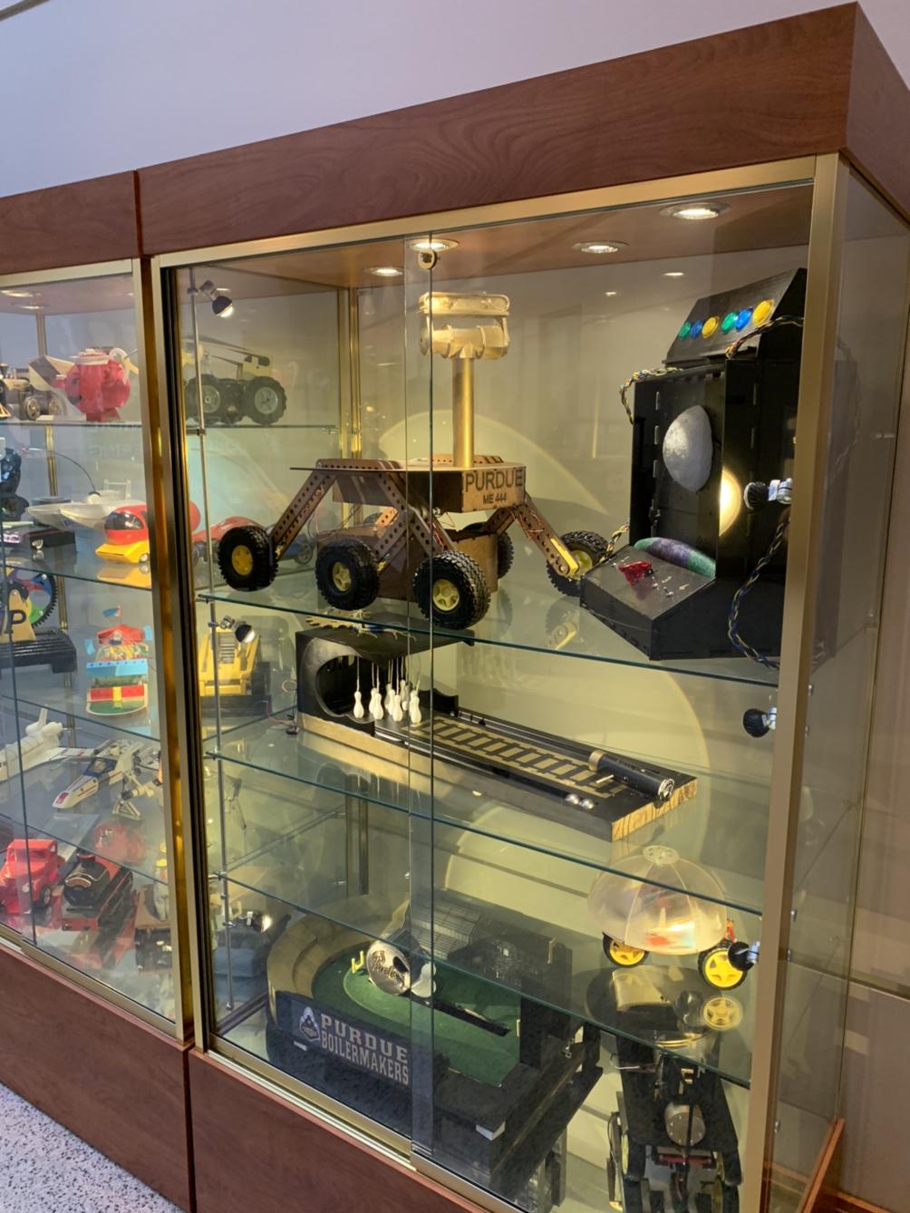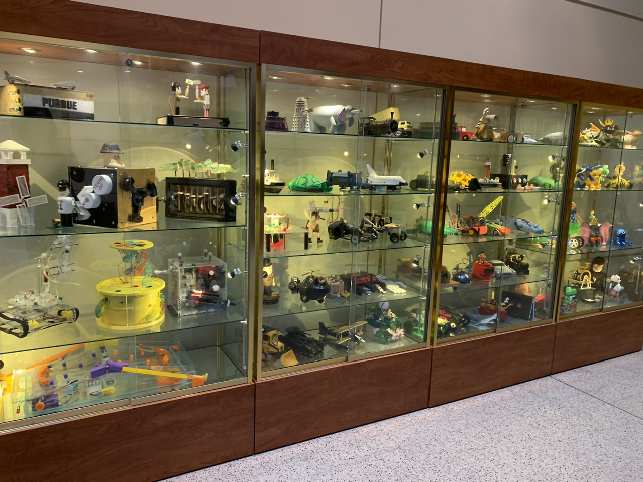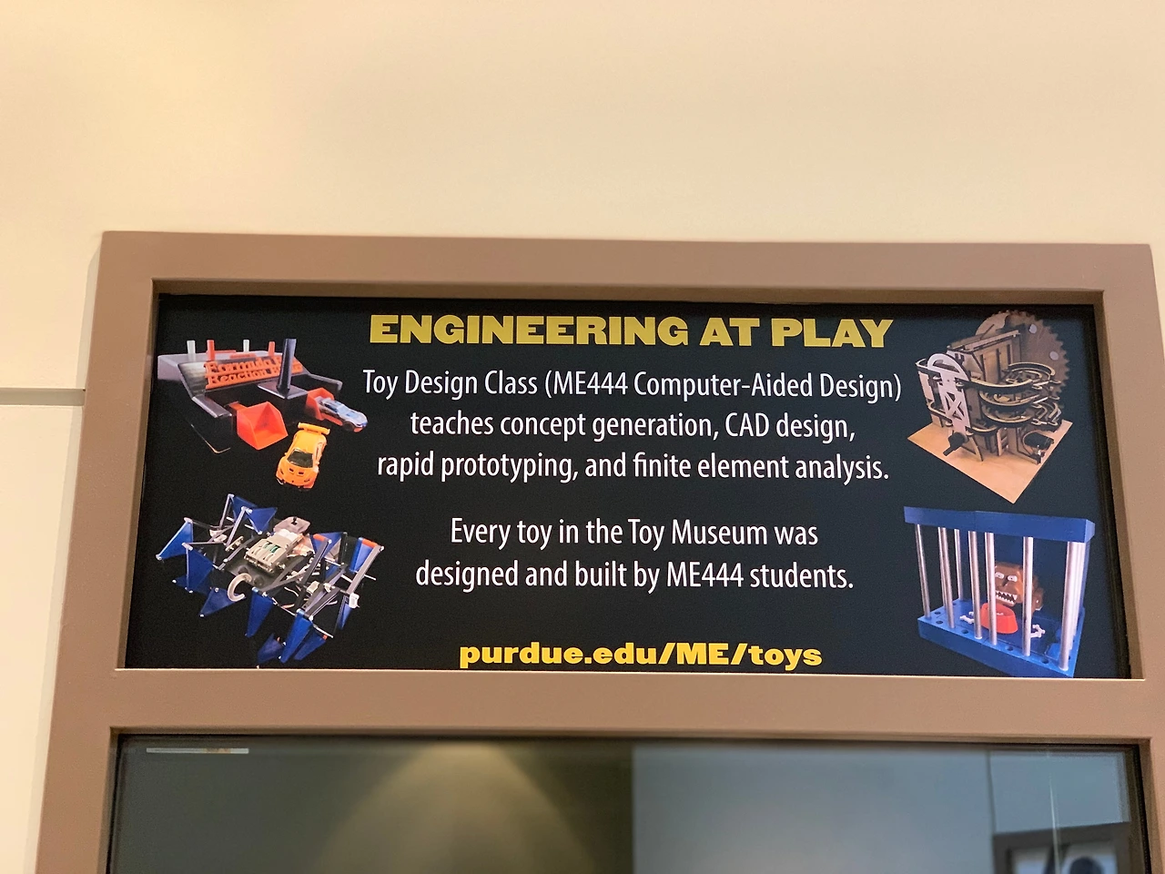 welcome to Purdue toy museum! 인간 능력의 한계를 뛰어넘는 무시무시한 사람들도 이렇게 깜찍한 수업도 듣곤 한다. don’t kill the fun. 어느 분야에서든 최후의 승자, 최고의 강자는 그 일을 즐기는 사람들이다. 아이들이 운동을 하고 악기를 배우고 여러가지 액티비티를 하며 자랄 때 선생님과 코치들이 늘 외치던 말.. don’t kill the fun!! even in the college classes. 그래서 토이 디자인으로부터 시작한다! 실은 딱딱하고 지루한 엔지니어링에 대한 관심이 어느 하루 싹트는 것은 아니다. 어려서부터 가지고 놀던 장난감의 쓸모를 향상시키려고 이리 저리 띁어보던 호기심의 현실적 연장인 것이다. 자동차, 배, 비행기, 로켓 만드는 사람들은 그렇게 자라난다. sabb, 포드, 롤스 로이스, 록히드 마틴, 보잉, space x, 블루 오리진, 버진 갈락틱을 이끄는 엔지니어들의 산실이 이 캠퍼스.