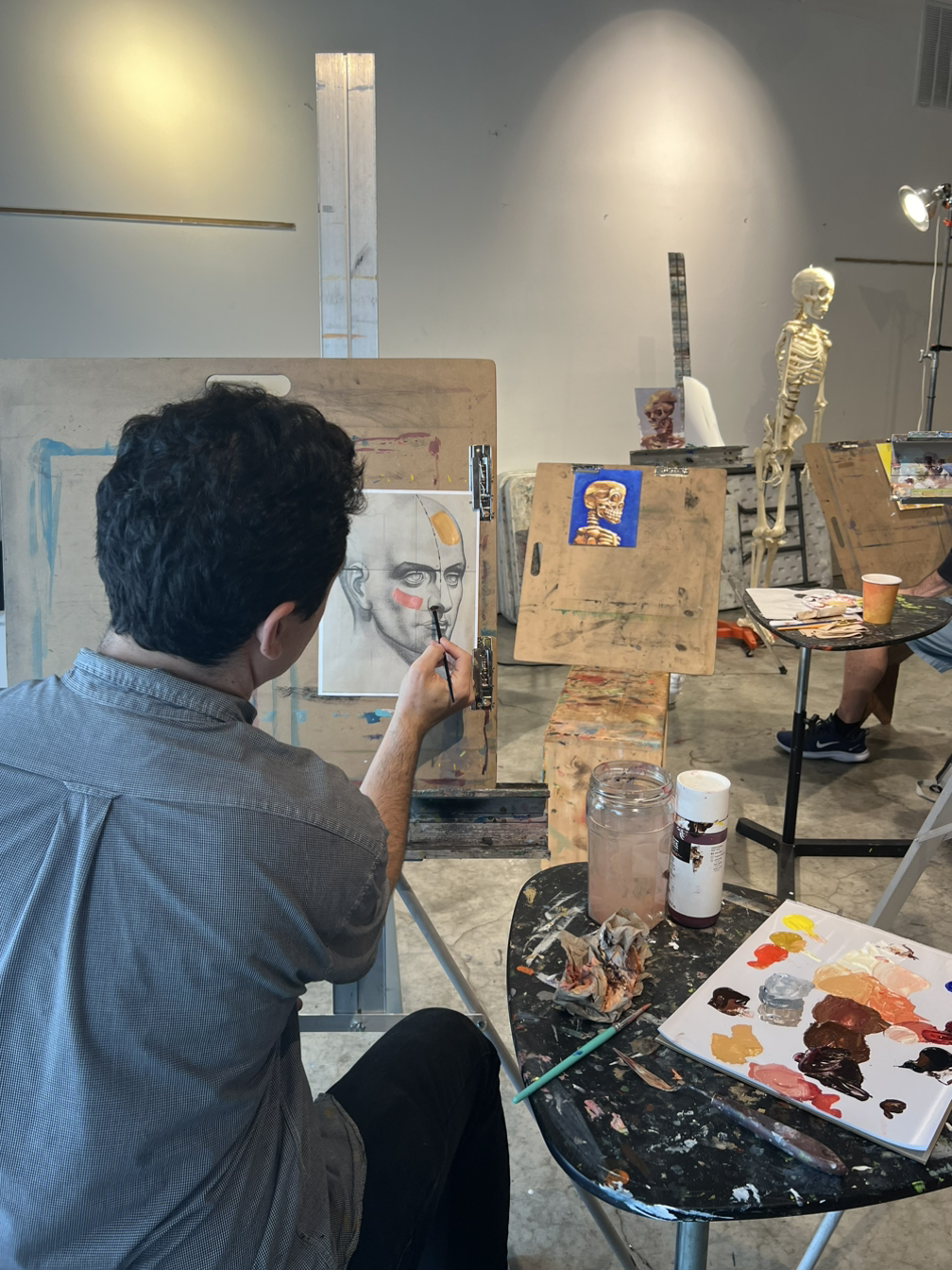 스튜디오에는 zack선생이 등을 보인 채 테이블 앞에서 재료를 준비하고 있었다. 몇 사람은 이미 이젤 앞에 자리를 잡고 있었다. 오늘은 실물 모델 대신 새하얀 skelleton 이 조명 아래서 앙상한 전신을 드러내고 서 있었다. 오늘은 반 고흐처럼? 그럴리가..... 그럴수가.... 세상에나 다시 봐도 천재는 천재시네 반 고흐.