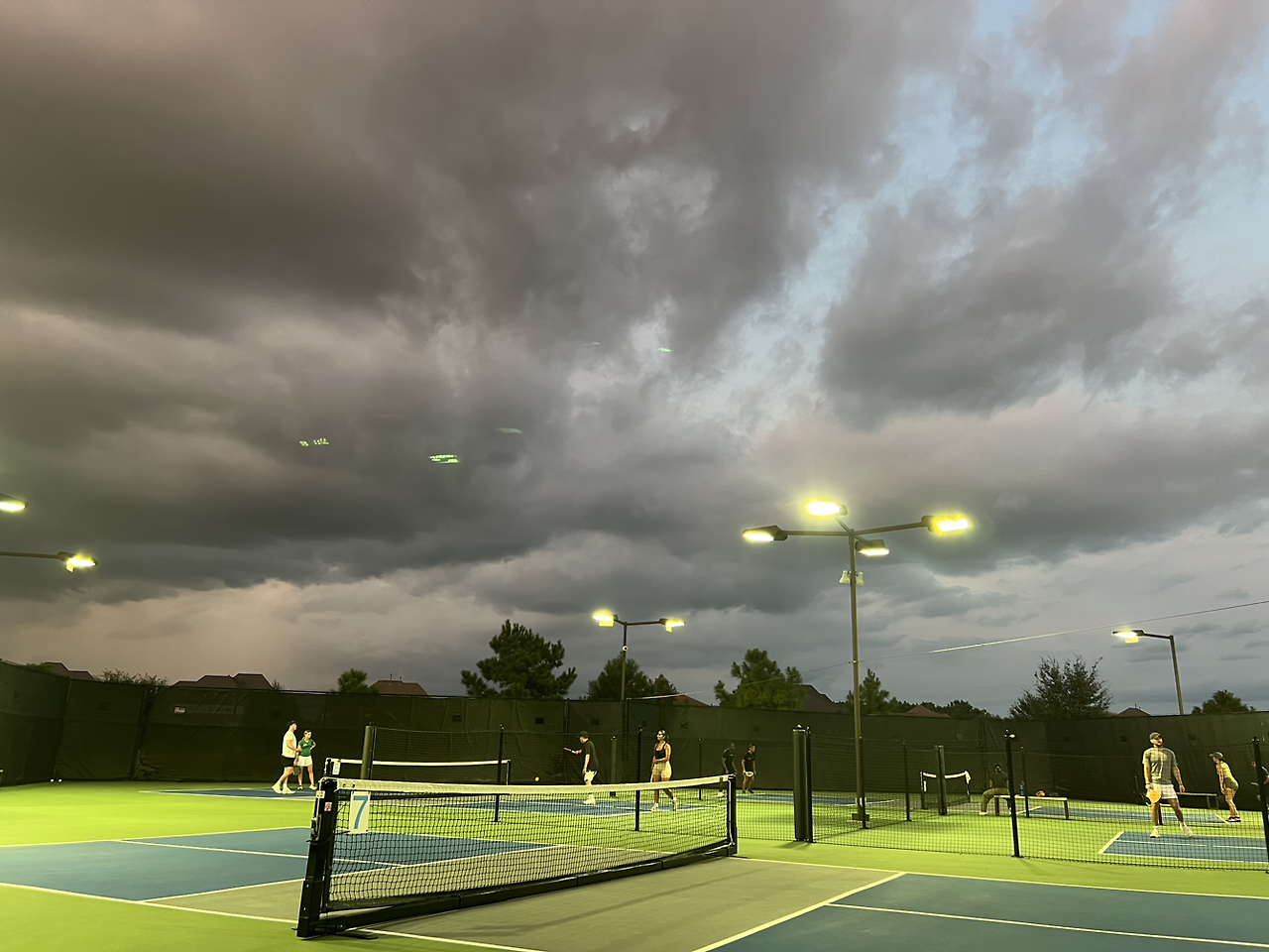 사람들은 테니스 라켓 대신 피클볼 패들을 휘두른다.