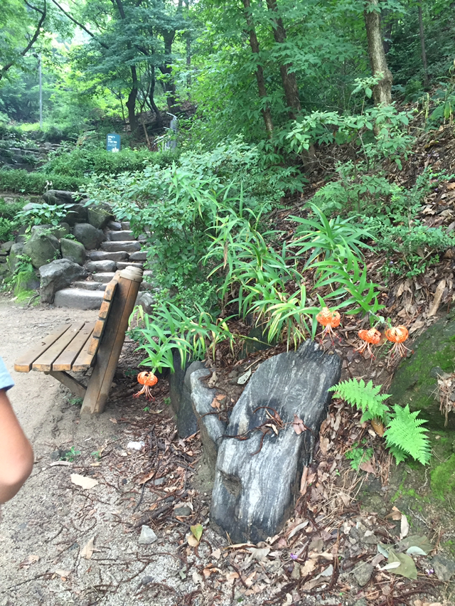 그러나 이제 산에 오를 수 있는 때는 언제나 여름, 그래서 귀국한 다음 날 아침이면 시차는 비행기에 두고 내리기라도 한 듯, 집 뒤의 산으로 곧장 산책을 나서곤 한다. 아쉽게도 내가 이십 대를 보내며 오르내리던 멀리 있는 높은 산이 아니라, 시댁 뒤에 있는 언덕 같은 대모산이다. 대모산은 산이라기엔 부끄러운 높이로 해발 300미터가 채 되지 않고, 조금 덩치 큰 언덕이라고 하면 적격이겠다. 해서 등산이라기 보단 산책이란 말이 어울린다. 산책길은 너무나 아기자기 다채롭다.