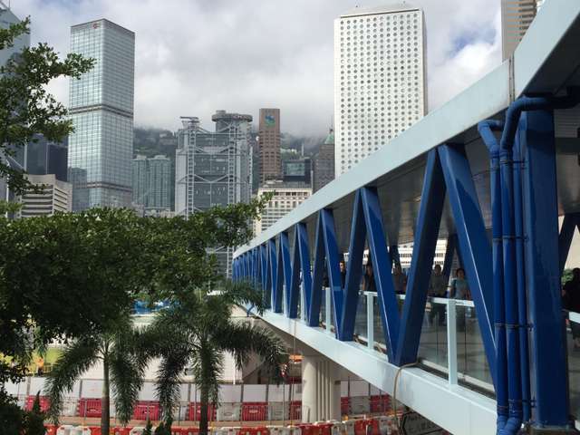 다음 날 시가지 여행에서 돌아오며 걷다 보니 알게 된 사실은, 홍콩 섬의 센트럴 지역은 빅토리아 하버로부터 홍콩 전철역을 연결하며 시가지와 산 언덕배기의 소호지역까지 전거리가 육교와 에스컬레이터로 연결되어 있어, 좁고 비탈진 거리를 자동차나 탈것의 도움 없이도 안전하게 왕래할 수 있게 설계되어있다. 비가 오나 (눈이 올 일은 없겠지만) 악천후의 기후 속에서도 행인들이 젖지 않고 걸어 다닐 수 있도록 설계 해 둔것은 무척 감탄스럽고 현명한 처사다. 준비 없는 여행에 지리를 전혀 몰랐던 첫날 아침은 호텔에서 하버까지 택시를 탔지만, 오후부터 떠날 때까지는 호텔에서 하버 프런트까지 이 육교 위를 여러 차례 걸어 다녔다. 육교 위에서 보는 도시의 야경 역시 장관이었다. 오픈된 공간에서 비용 없이 즐기는 홍콩의 야경은 육교뿐만 아니라 ifc의 옥상 정원에서 full version으로 볼 수 있다.