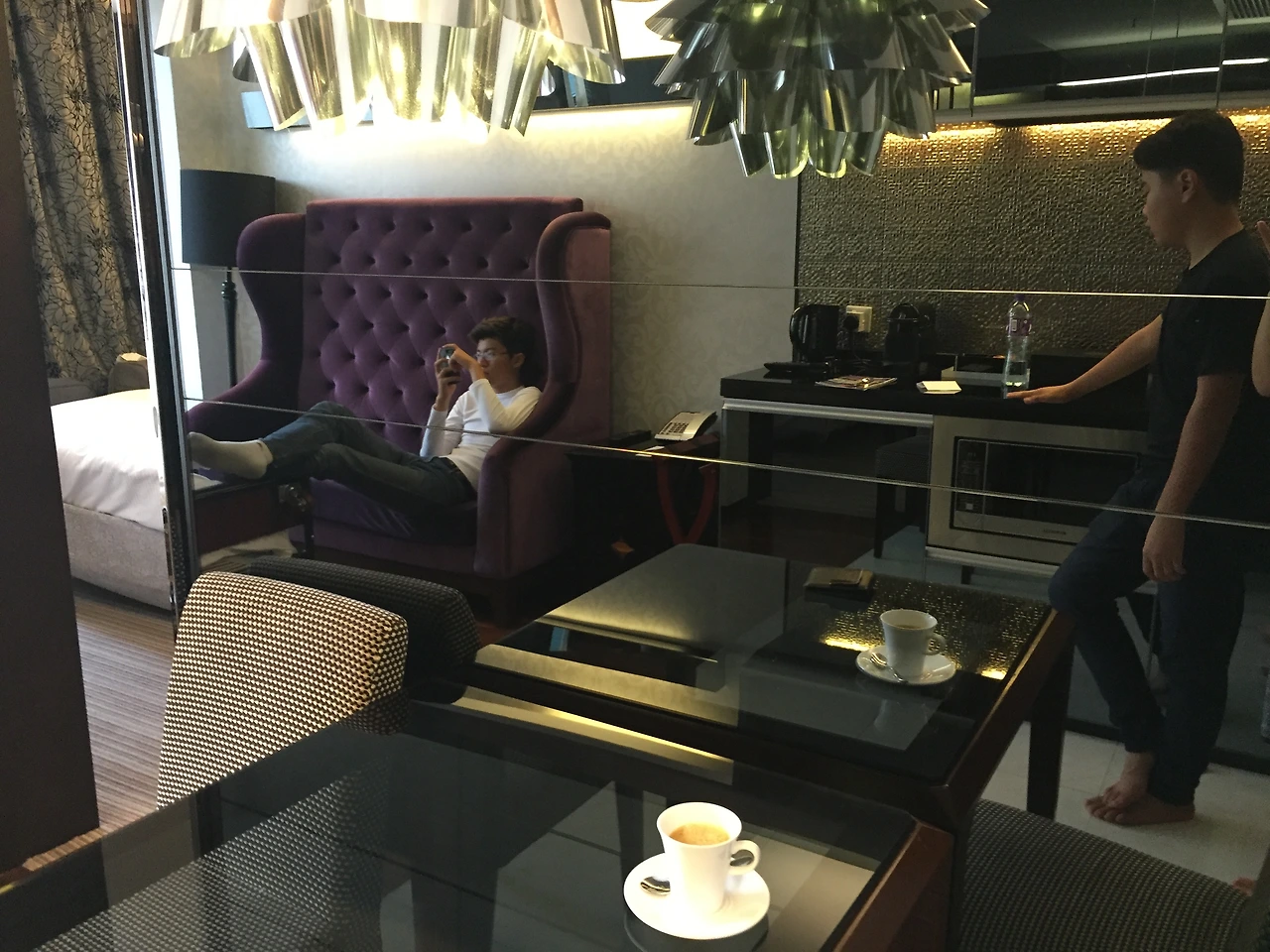 앞서 미국으로 출국한 남편이 홍콩역에서 가까운 센트럴 지역에 우리가 묵을 호텔을 예약해 두었다. 호텔방에 들어서니, 응접실을 겸한 조그마한 키치 넷은 거울처럼 반짝이며 모던한 느낌을 주고 거실 안쪽으로는 보라색의 벨벳 느낌이 도는 로맨틱한 패브릭 소파가 놓여 있다. 한 순간에 아늑한 느낌을 전해온다. 매우 좁은 공간임에도 당신을 초대합니다 하는 느낌이 들도록 구성된 이 낯선 방에서 아이들은 벌써 우리 집에라도 도착한 듯 편하고 기분 좋은 마음을 드러낸다. 무엇보다 반가운 것은, 집에서도 즐겨 마시는 색깔의 에스프레소 캡슐들과 집에 있는 것과 똑같은 하얀색 에스프레소 잔이 꼭 맞춘 듯이 구비되어 있어, 지난 한 달간 에스프레소 갈증을 느끼던 피곤하던 눈은 반쩍 떠진다.