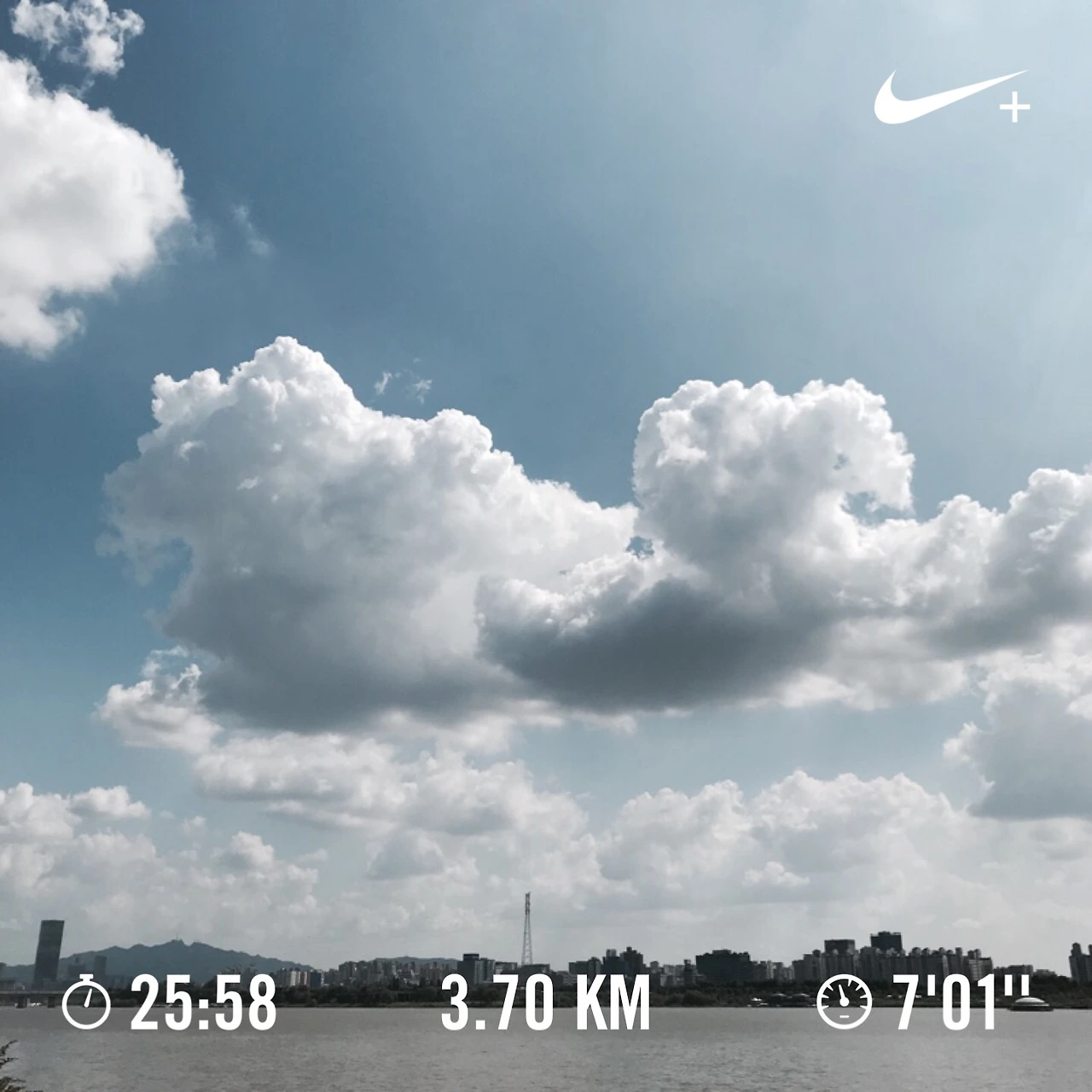아쉽게도 커브스는 주부를 주 고객으로 삼는 브랜드라, 평일에도 저녁 8시면 문을 닫고, 토요일엔 오후 1시, 일요일엔 아예 문을 열지 않는다. 운동이 주는 스트레스 해소의 쾌감을 느껴본 바 있으니, 주말에도 운동을 해야겠다 싶어서 시작한 게 바로 러닝이다. 러닝은 아무 도구 없이 쉽게 나가서 즐길 수 있다고 알려져 있는데, 사실 내게는 좀 까다로운 운동이다. 러닝의 이상을 실현시켜 줄 각종 장비(나이키 러닝 어플, 러닝 티셔츠, 러닝 레깅스, 러닝 운동화, 러닝 암밴드 등등)들이 계절에 맞게 라인업을 갖춰야 했고, 미세먼지가 많은 날엔 뛸 수 없고, 매연이 심하지 않은 산책로를 찾는 것도 중요했다.