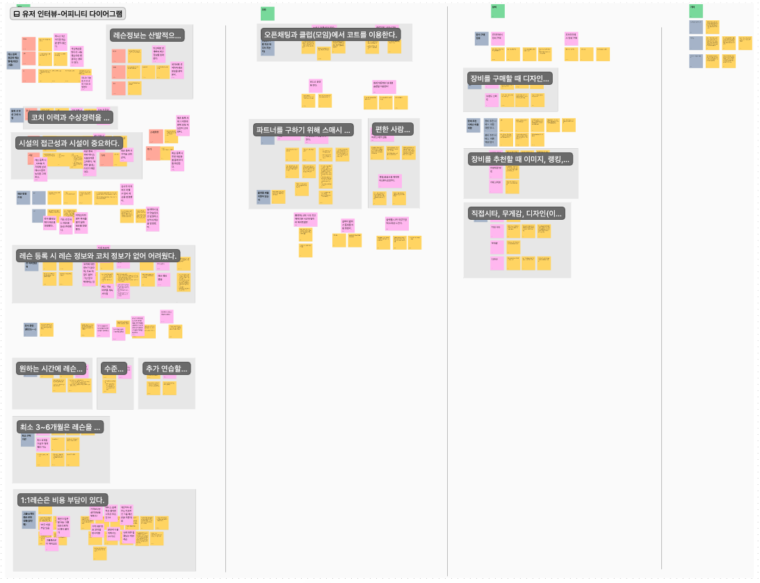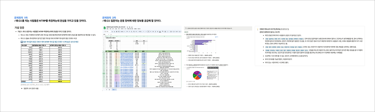 A. 이를 위해 설문조사를 진행하였고, '테니스 입문자'는 '테니스 레슨에 대한 정보를 구하기 힘들다'는 문제를 발견하였고 이에 대한 검증으로 데스크 리서치를 통해 보다 뾰족한 문제 가설을 세웠습니다.