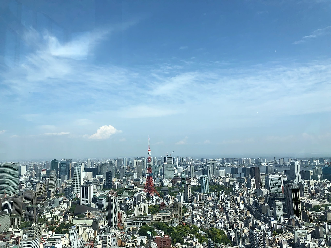 그리고 처음 마주하는 럭키하게 쨍한날의 도쿄 풀 시티뷰. 지상에서 올려다보았을 때에는 빼곡히 찬 느낌이었는데, 위에서 내려다보니 새삼 하늘에 이만큼이나 미치지 못했나 싶다. 높아봤자 하늘아래임을 깨달으며 무상감마저 느끼는 가운데, 통유리를 한참 내다보게 된다. 눈이 시릴 정도로 파아란 하늘. 구름도 방해하지 않는 날이다.