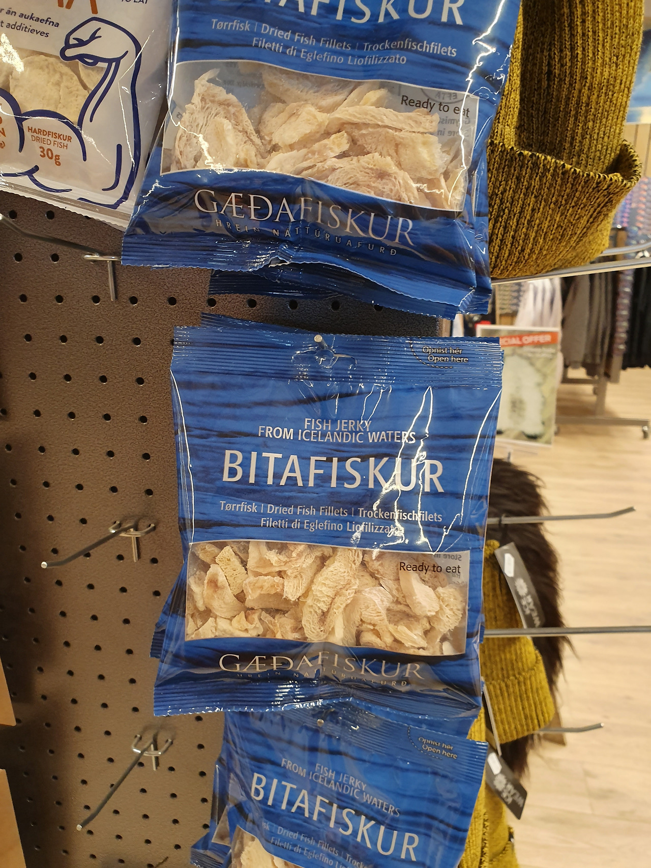 - 아이슬란드에서는 육포보다는 생선을 말린 생선포가 더 유명하다. 비리지 않고 식감도 좋다. 로컬 맥주인 Gull 맥주와 곁들이면 정말 꿀맛 되시겠다.