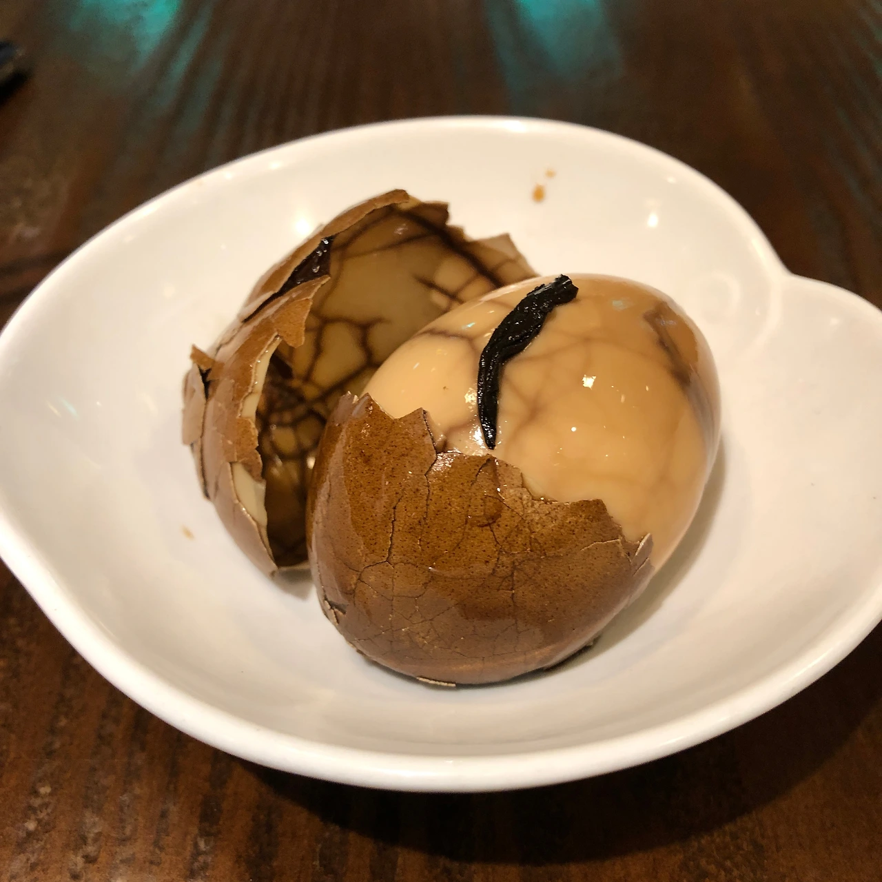 자리를 풀고, 시그니처 버블밀크티를 주문하면서 약간 허전한 마음에 tea egg를 함께 주문했다. 밀크티 자체의 당도 탓에 달다구리한 것을 곁들이기엔 물리는 느낌이라 아예 새로운 맛을 찾았다. tea egg 는 삶은 달걀의 겉면에 살짝 균열을 내어 녹차물에 담근 것이다. 수시간 담그고 나면 대리석 모양의 무늬가 달걀에 새겨진다. 그 비주얼과 맛에 호기심을 더한 티타임 시작. 버블이 다른 티샵보다 작아서 쫩쫩-하게 씹어주진 못했으나 부드럽게 쭉 넘길 수 있어서 좋았다. 기대했던 tea egg는 맥반석 계란과 비슷한 향에 짭쪼름함이 느껴지는 의외의 친근한 재미를 더해주었다.