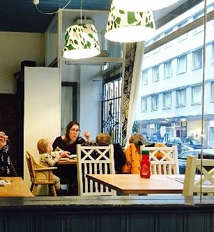자리와 마주 본 거울에 비추어보니, 옆 테이블에서 세 쌍둥이와 식사를 하고 있는 한 여성의 모습이 보였다. 아기가 하도 울어댄 탓에 먹는둥 마는둥하고 있었다.그렇게 식당 안에는 일본인 커플과, 핀란드 가족, 그리고 내가 어우러 앉아서 가정식을 먹고 있었다.