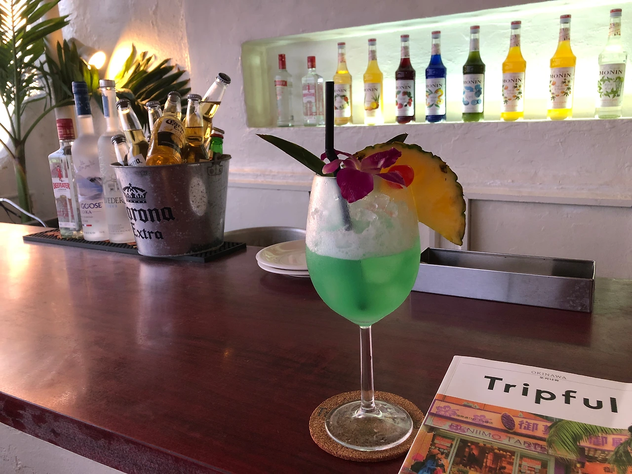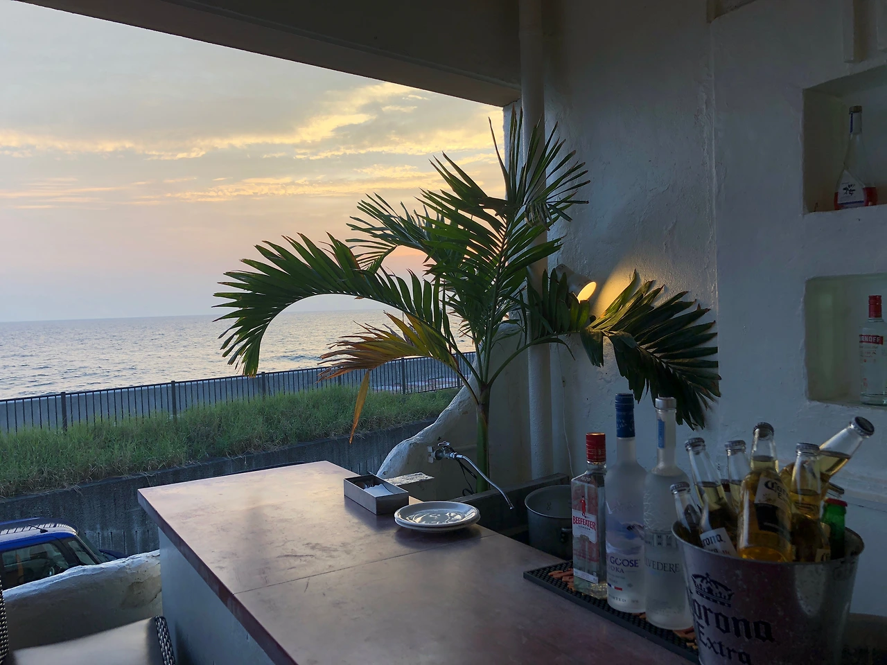 중부 아메리칸 빌리지의 해변가에는 밥집과 술집, 커피집이 듬성듬성 숨어있다. 식사류도 무척 맛있다고는 하지만, 시간 날때마다 이것저것 먹은 관계로 칵테일 한 잔을 즐기기 위해 들어선 이 곳. 바(bar)석은 예약을 하지 않으면 입장이 어렵지만, 제일 더운 시기에 방문한지라 내 자리 하나쯤은 마련해주었다. 로맨틱한 대화가 주를 이루는 가운데, 음악이 깔리고, 하늘의 색이 변하면, "이걸 보려고 오키나와를 왔구나" 급의 무드가 조성된다.