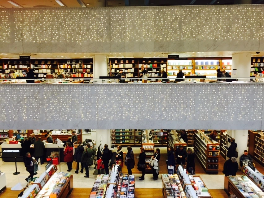 크리스마스 주간에 헬싱키역 근처를 지나며 스톡만백화점 옆에서 어렵지 않게 아카데미아 서점을 찾았다. 크리스마스를 앞둔 꽉찬 연말의 기운 속에서 한아름 책을 고르려는 발길이 이어지던 곳이다. 핀란드 뿐만 아니라 북유럽 내에서도 규모가 큰 편에 속한다. 내가 점심시간에 자주 붙어있곤 하는 광화문의 교보문고와 비슷한 역할로도 보였다. 영어 서적이 생각보다 많지 않아서 원하는 책을 고르고 독파해내긴 어려웠지만, 아름다운 서가와 그 사이에서 책을 고르는 사람들을 관찰하는 재미를 찾던 공간이다.