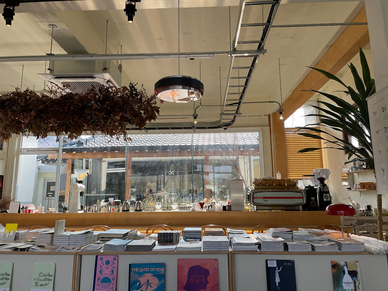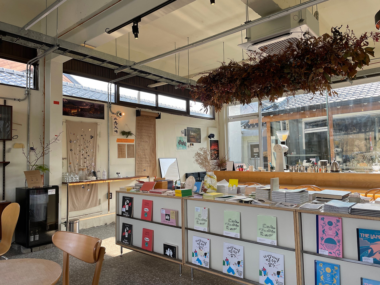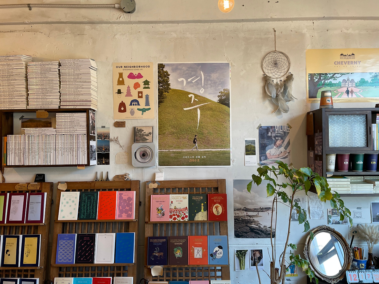 '향미사'는 다양한 향미의 커피를 선별하여 제공한다는 의미로 지어졌다. 샵인샵 방식으로 책방 '지나가다'가 입점해있다. 그래서, 독립서적들과 귀여운 굿즈들을 둘러보는 것은 또다른 재미다. 이번 카페놀이는 온전한 집중을 허락한다는 계시인지, 항상 나 혼자만의 것이었다. 슬슬 적적해질 타이밍인가 싶다가도, 그런 기분의 습격을 받을 즈음이면 항상 여행은 막바지에 이른다. 실제로 향미사에서 마신 커피가 '신라 카페놀이'의 마지막 잔이었군.