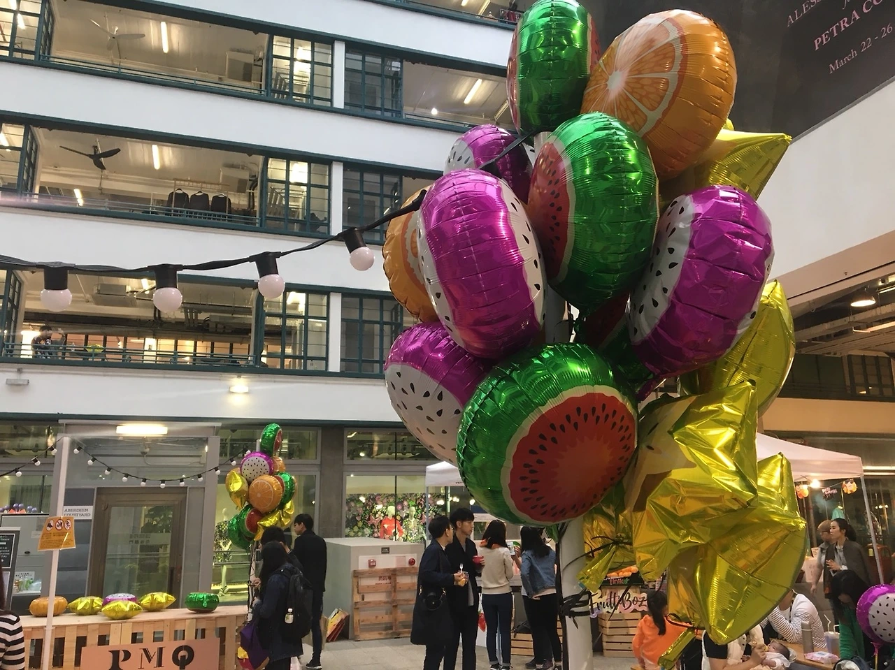 내가 PMQ에 방문했을 당시, Fruit Jamming Market으로 중앙광장이 꾸며져 있어서, 과일이 구석구석을 채우고 있었다. 중앙광장에서 압도적인 비주얼의 과일 모양 헬륨 풍선들이 무더기로 널부러져 있고, 마켓들은 모두 과일 아이템으로 소비를 자극한다. 과일 소다, 과일 학용품, 과일 향초, 과일 성분의 천연 화장품, 과일건조칩이 알록달록하게 반긴다. 언젠가 우연히 들어섰고, 잘 먹지 않는 과일청을 가득 쟁였던 마르쉐가 오버랩되기도 하는 순간이다.
