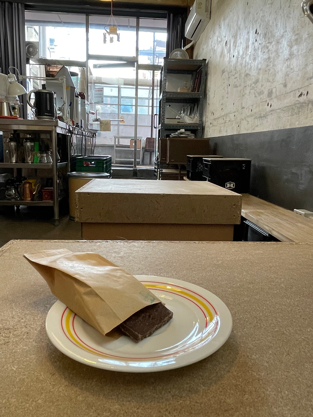 무엇을 마셔야할지 도저히 종잡을 수가 없었는데, 주인분께서 진중한 모습으로 커피 컨설팅을 해주신다. 이미 내륙의 커피장인으로 유명하신터라, 막힘없이 자신감있게 권하는 메뉴를 따랐고 짐을 잠시 풀었다. 연이어 누룽지를 뽀개어 넣은 초콜릿도 추가했다. 초콜릿향이 밴 드립커피와 상큼한 맛이 더해진 미숫가루, 진한 라떼를 조금씩 맛보며 더운 숨을 식힌다.